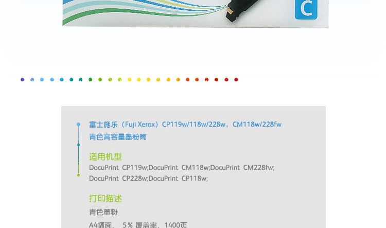 商品名称:富士施乐 CM118w系列原装青色高容墨粉