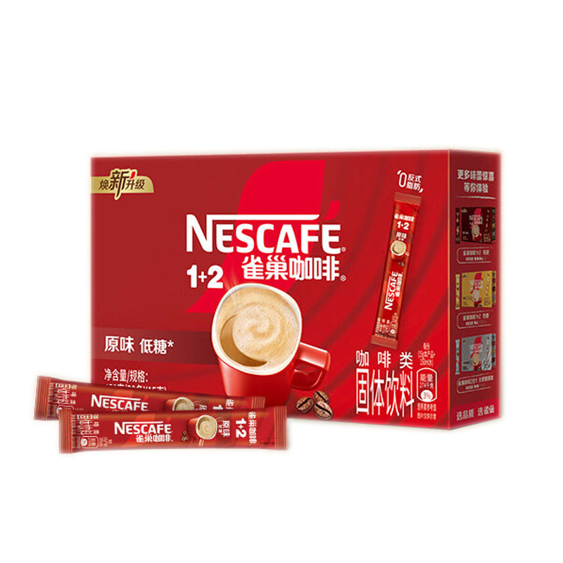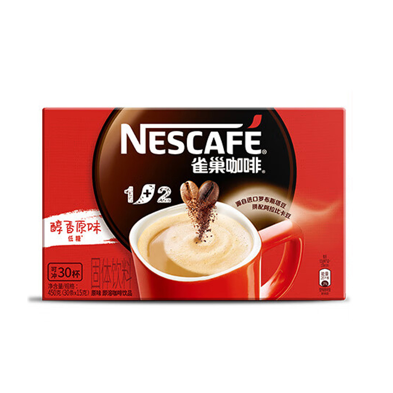 雀巢(Nestle)咖啡粉1+2原味低糖*微研磨三合一学生工作速溶冲调饮品30条450g 单位:盒