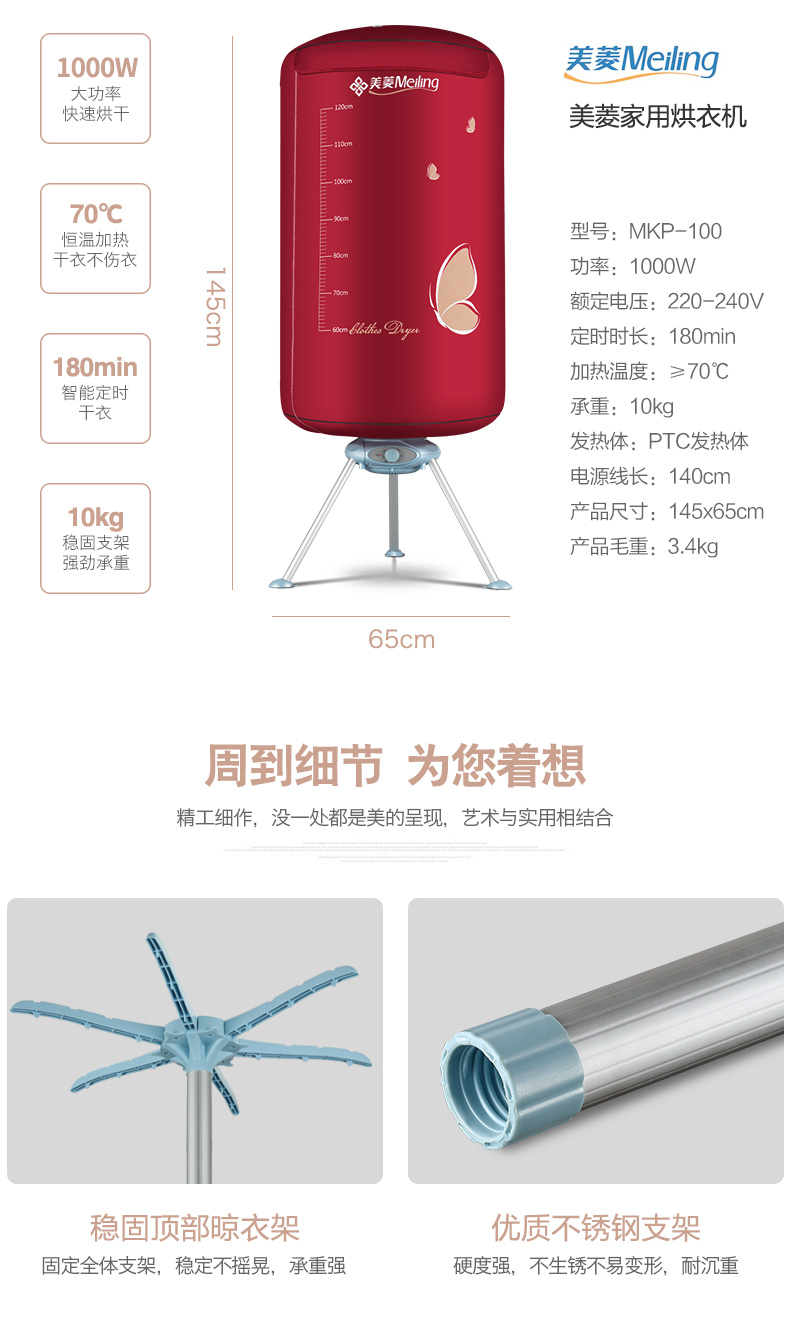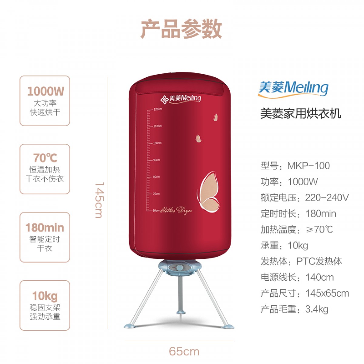 商品名称:美菱 圆形烘衣机静音省电暖风速干烘干机 MKP-100