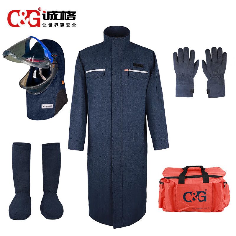 商品名称:诚格 (C&G) 40cal防电弧服大袍套装 Ⅳ级本质阻燃防护ArcPro-RBkit-DP40G 高透前开式头罩耐磨耐高温 藏青色 (尺码:S-3XL)单位:套