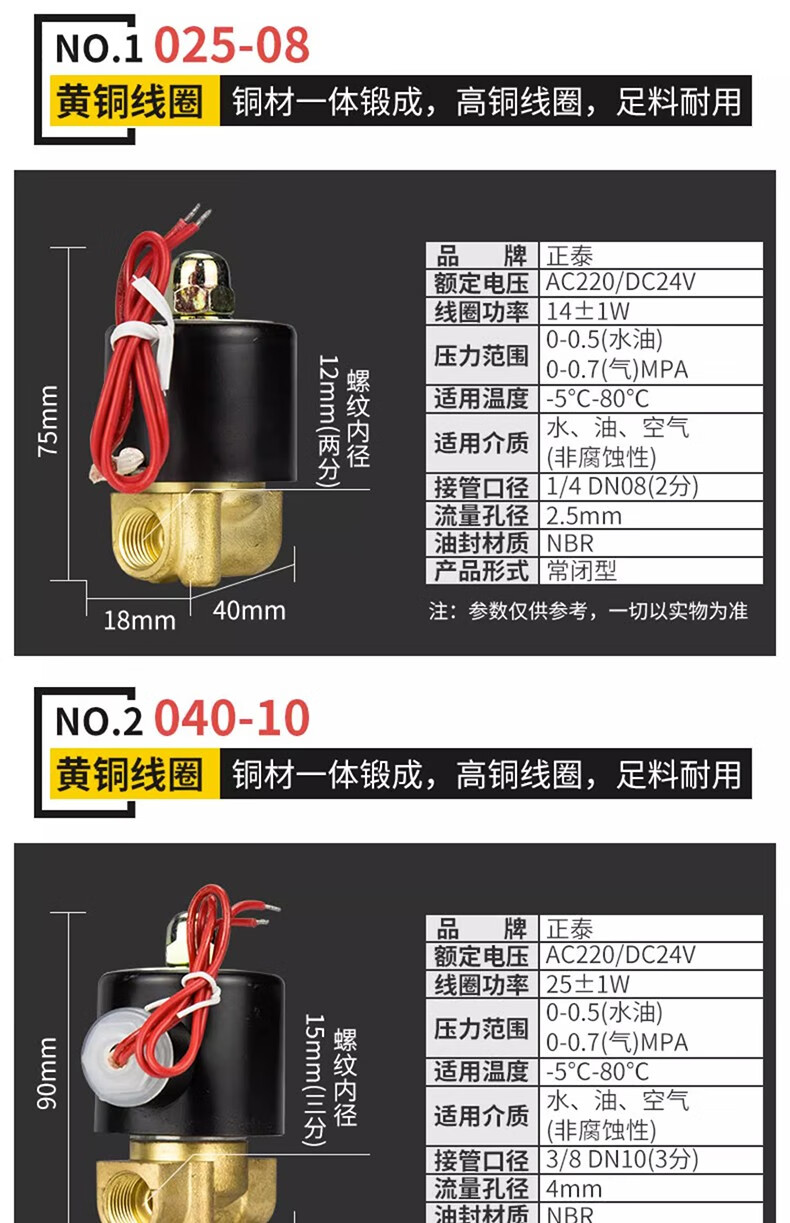 商品名称:正泰(CHNT)电磁阀水阀磁开关阀 气阀常闭铜 水阀电磁阀220v 2分3分4分6分1寸 (一寸) 250-25 220V 单位:个