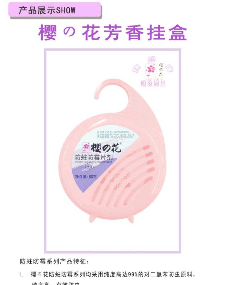 商品名称:樱之花 防霉防蛀樟脑丸80克芳香挂盒6件衣柜驱虫去味