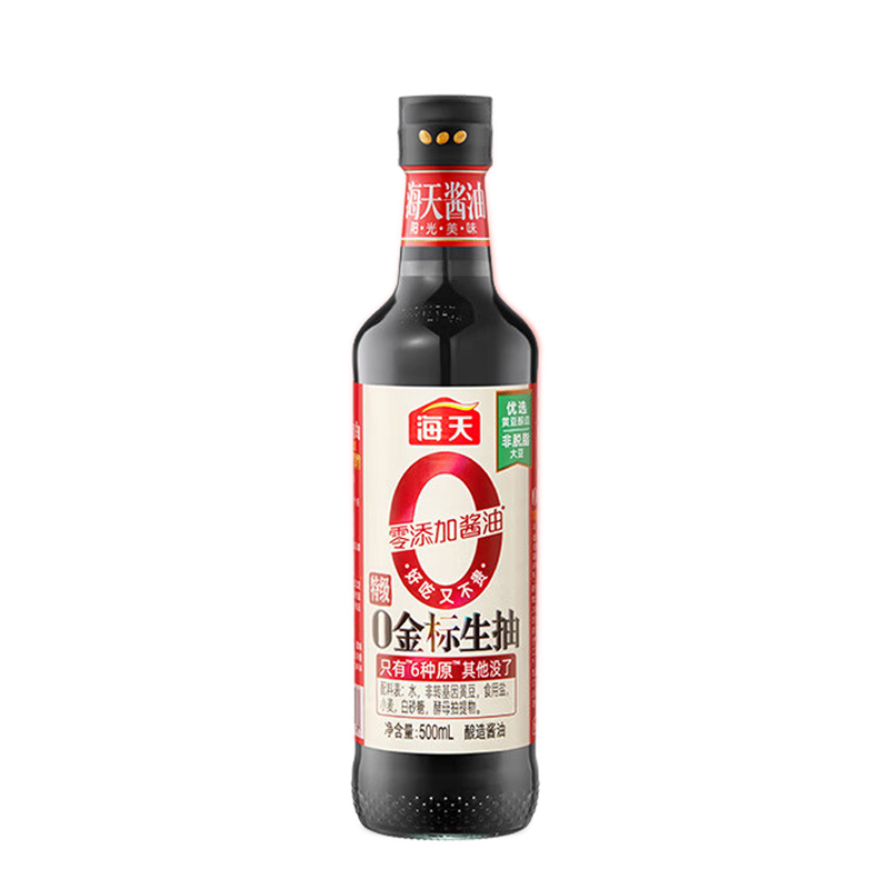 商品名称:海天酱油 0添加金标生抽500ml 零添加酱油特级酿造提鲜炒菜调味品 0金标生抽500ml*1瓶 单位:瓶
