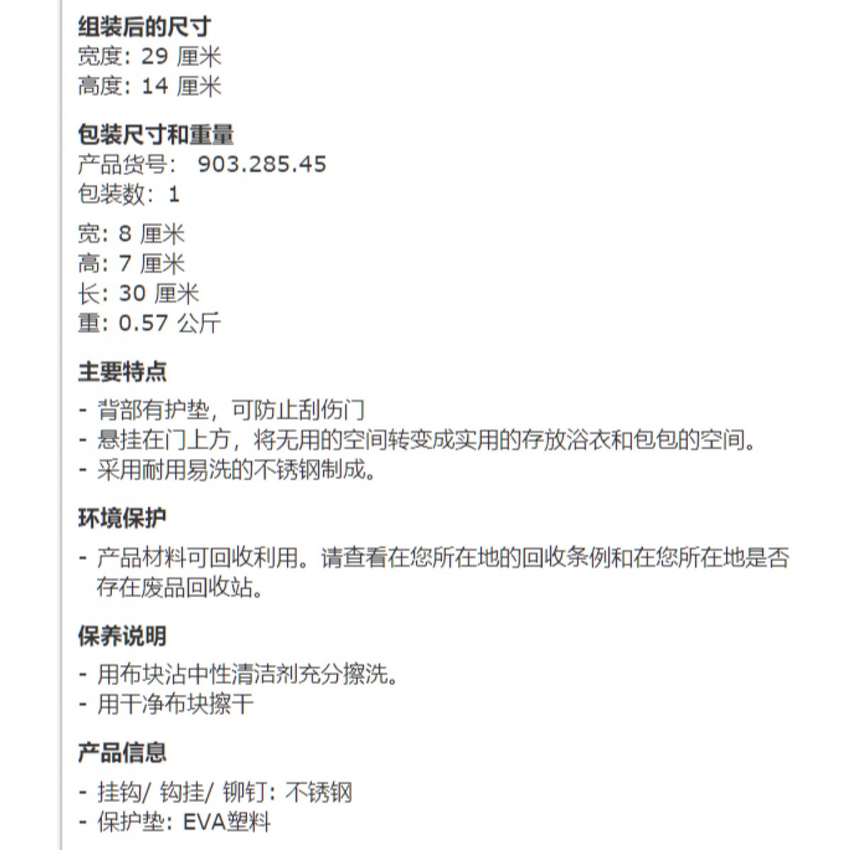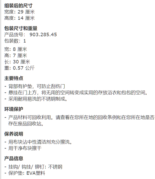 商品名称:布鲁格隆德房门式挂衣钩不锈钢门背式无痕衣帽