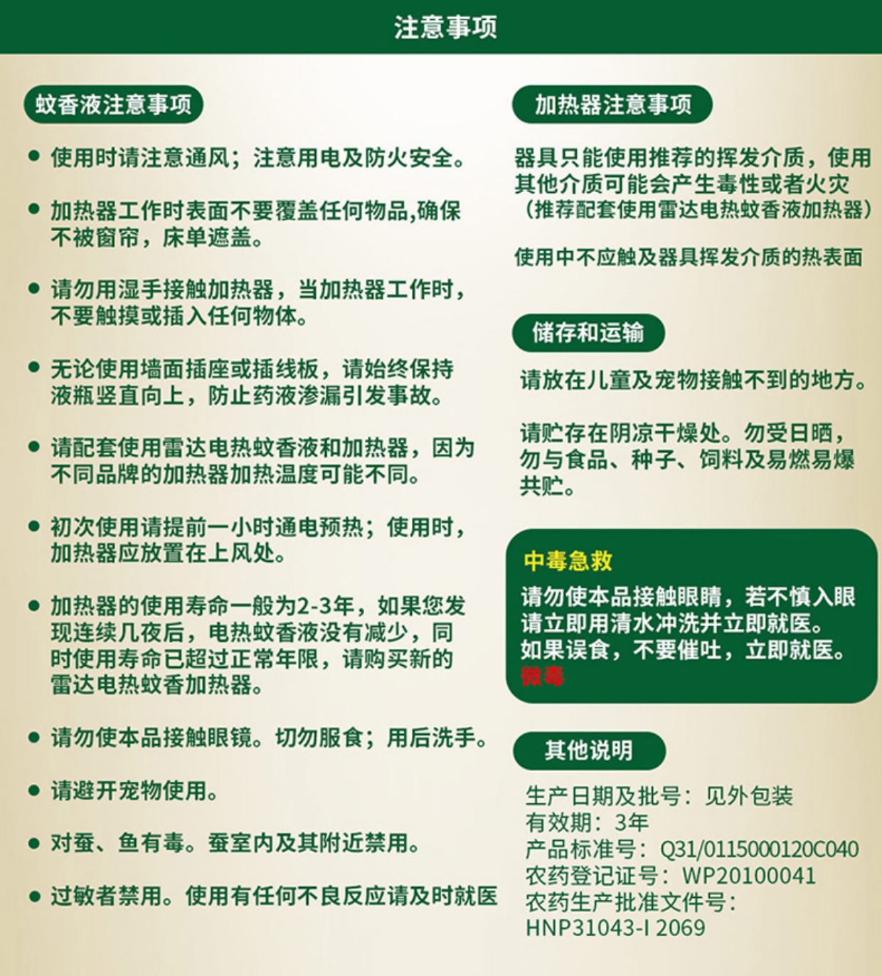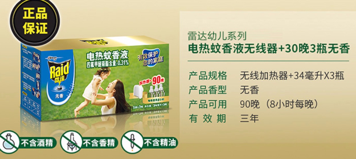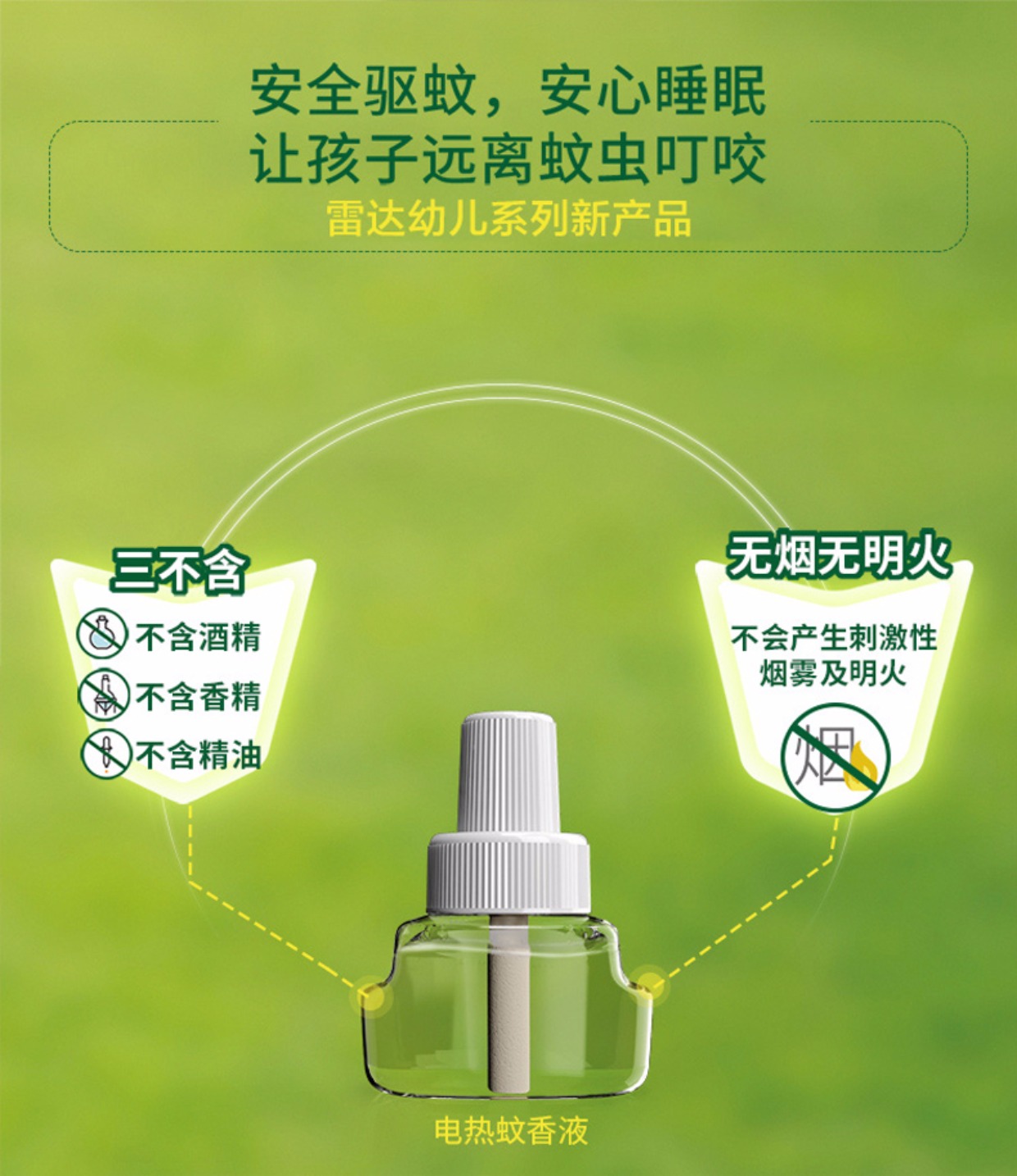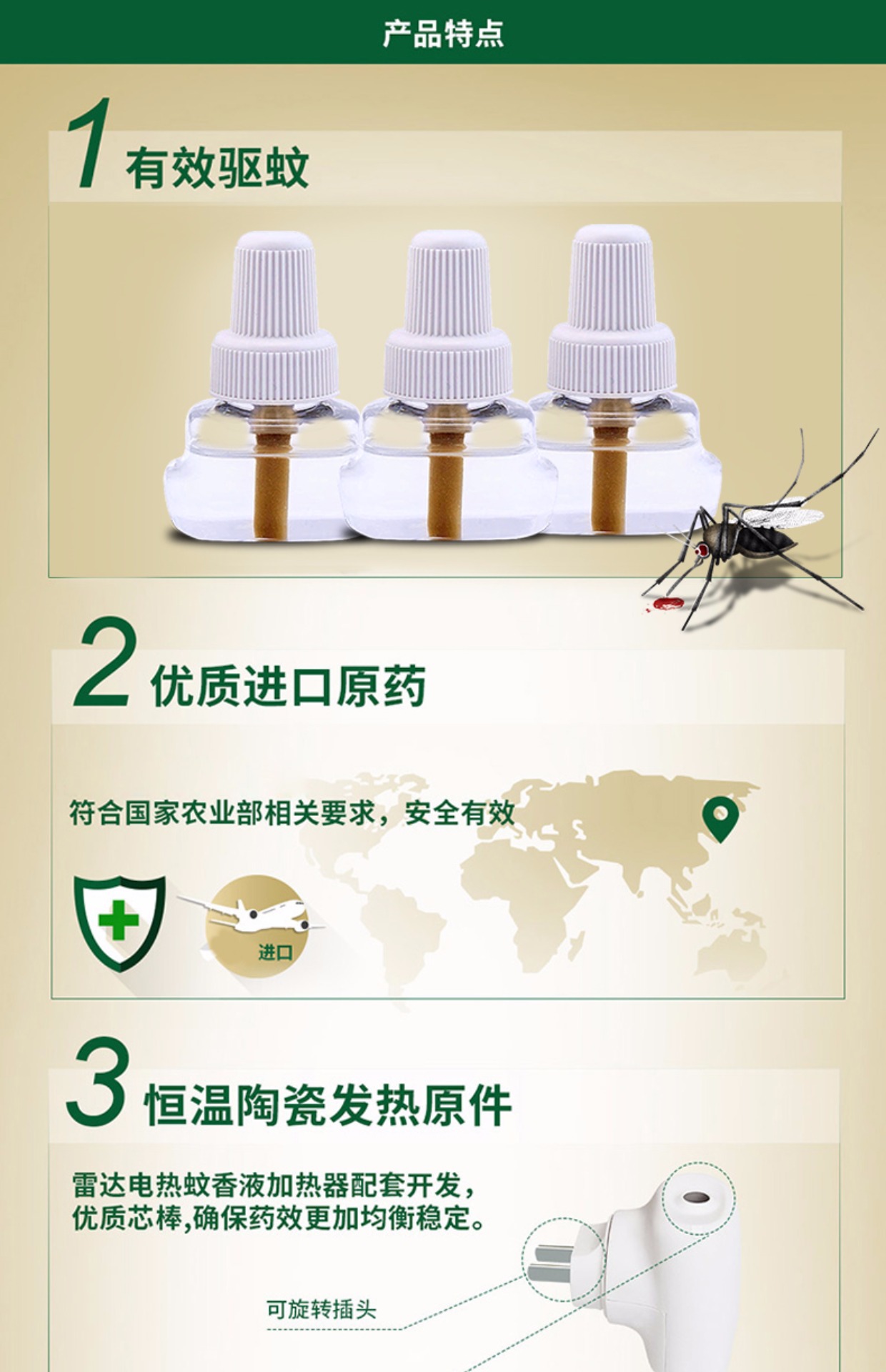 商品名称:雷达 电热蚊香液无线器+6瓶液无香可用180晚宝宝儿童系列驱蚊香液