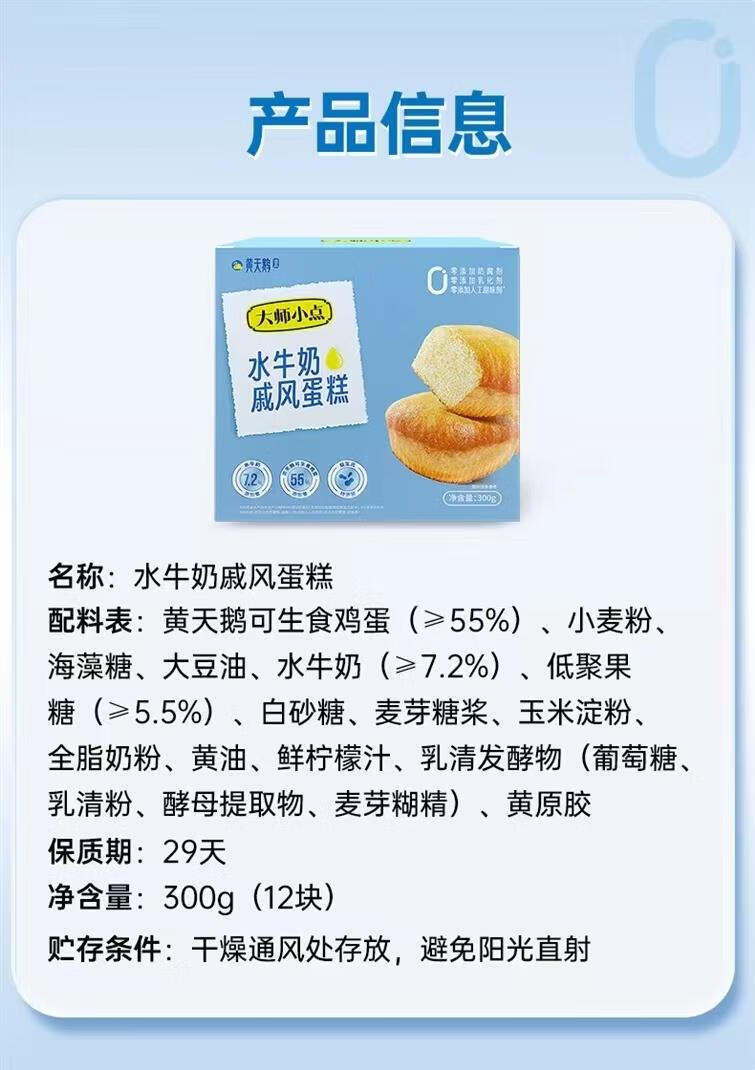 商品名称:黄天鹅 大师小点0添加原味蛋糕300g盒装*2盒