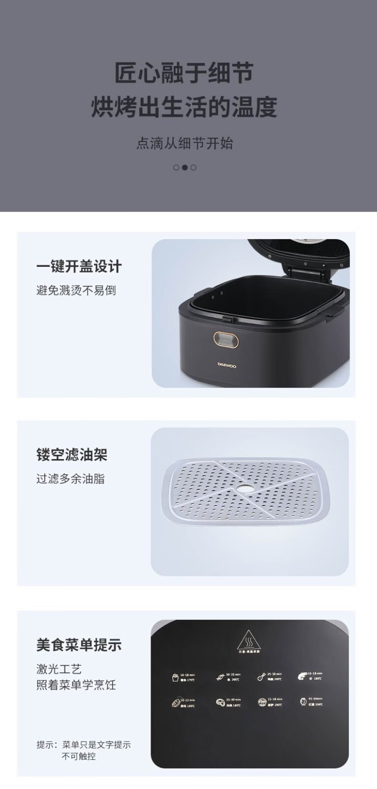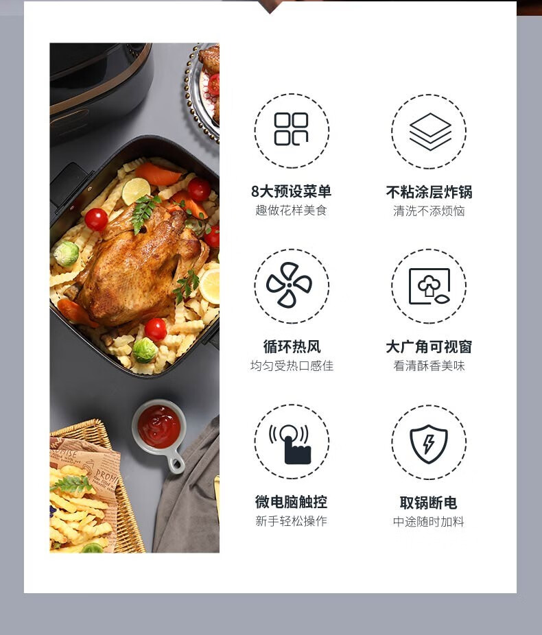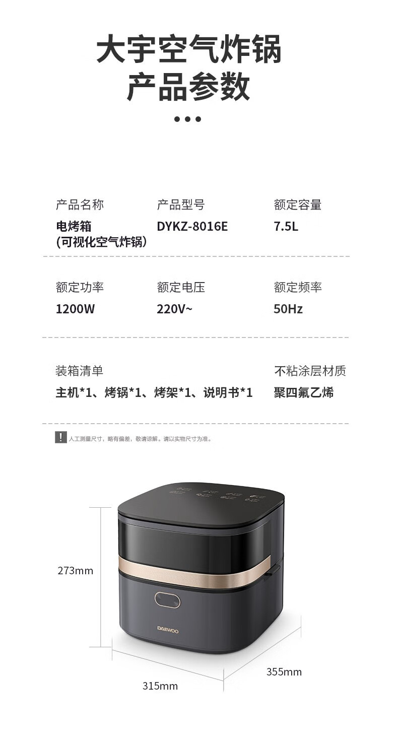 商品名称:大宇 空气炸锅家用大容量7.5L多功能智能可视电炸锅DYKZ-8016E