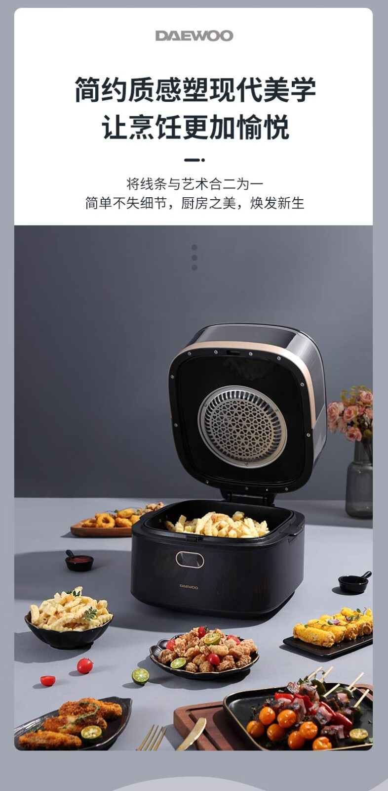 大宇 5L容量无油智能触控一体多功能空气炸锅DYKZ-5001E