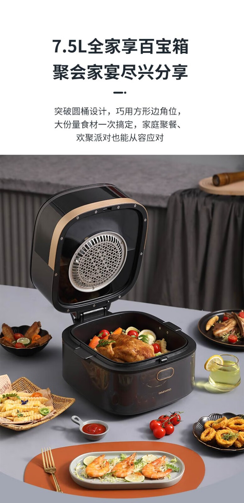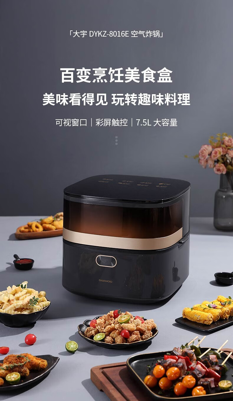 大宇 空气炸锅家用大容量7.5L多功能智能可视电炸锅DYKZ-8016E