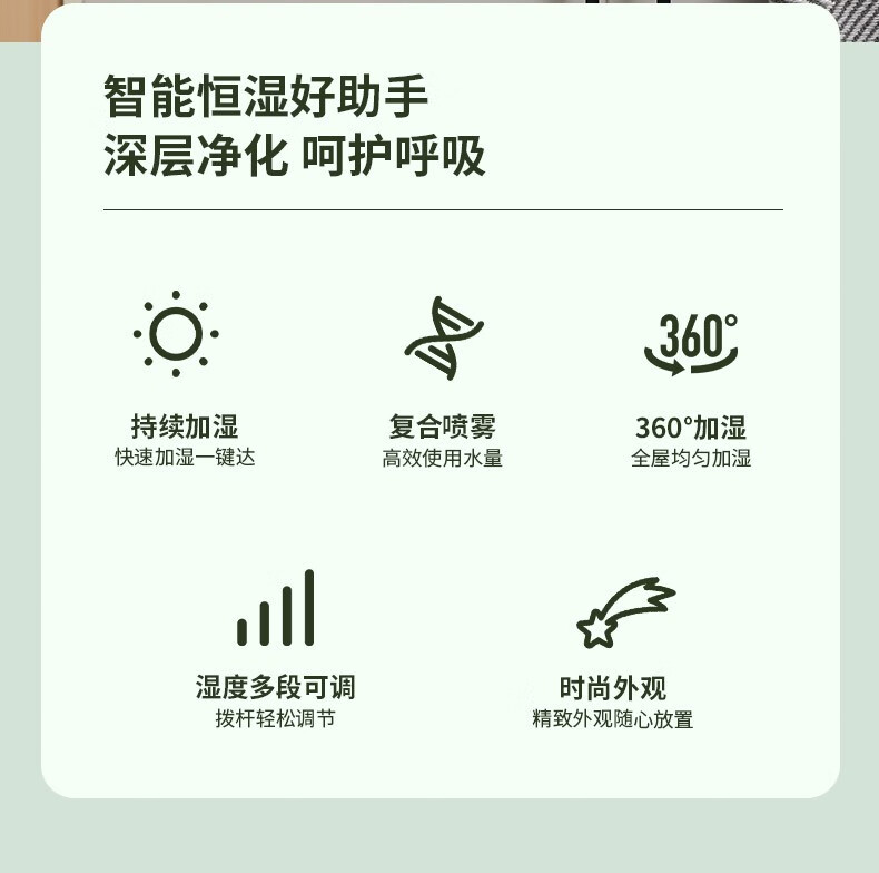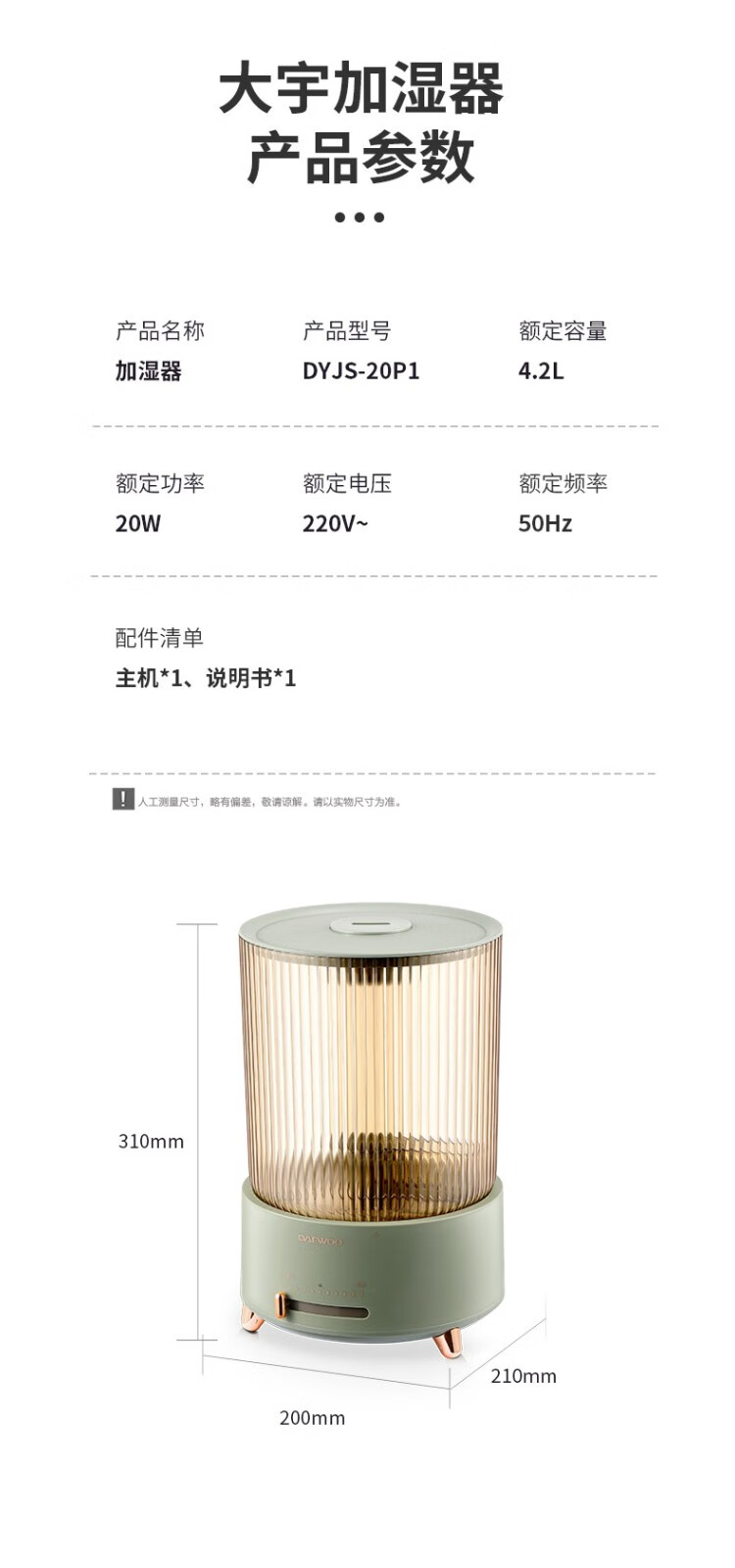 商品名称:大宇 家用卧室4.2L大雾量加湿器DYJS-20P1 云雾绿
