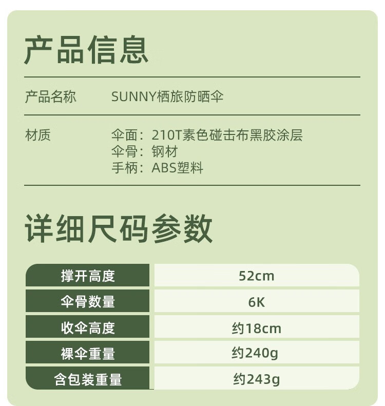 商品名称:VVC SUNNY栖旅防晒伞 VGY4S206 黑色