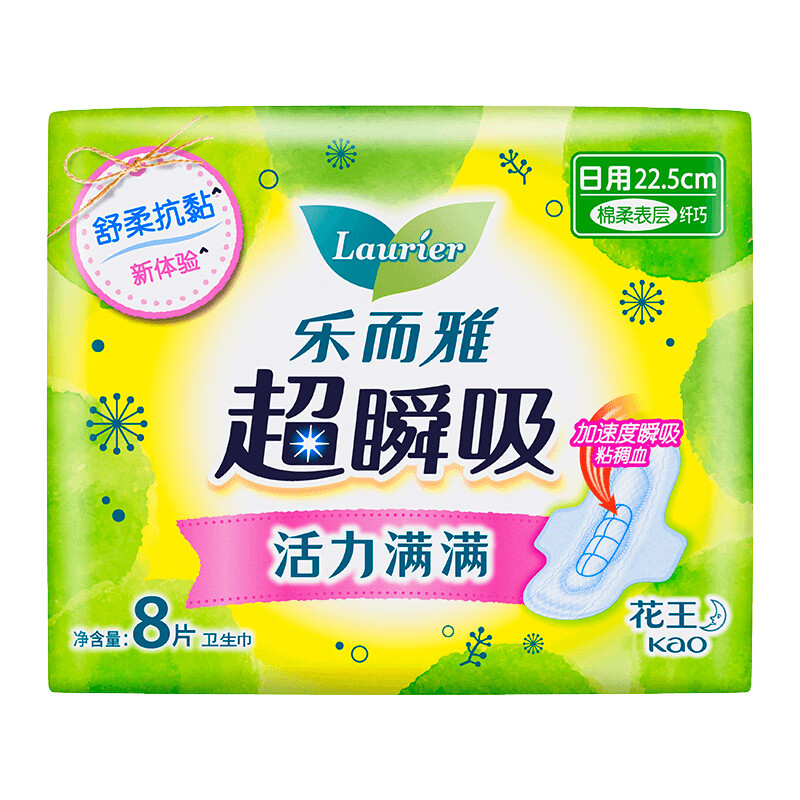 商品名称:花王 乐而雅超瞬吸 纤巧日用护翼型卫生巾22.5cm 8片 单位:包