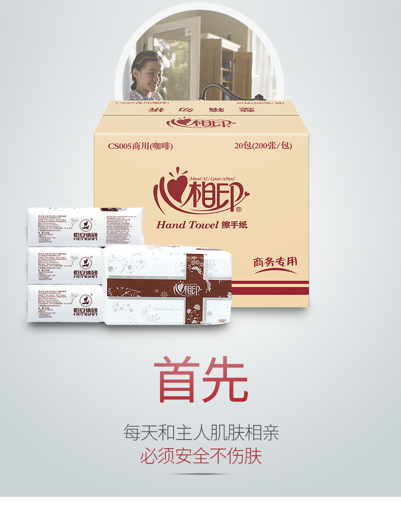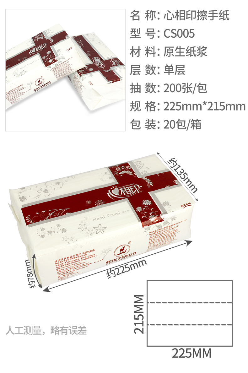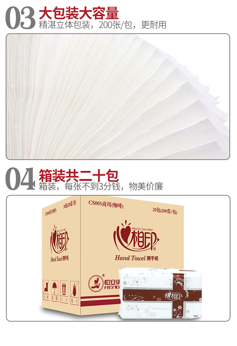 商品名称:心相印擦手纸抽取式200抽酒店商用卫生抹手纸卫生纸厨房用纸20包