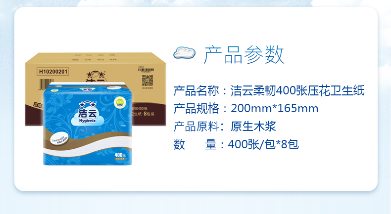 型号:洁云柔韧压花卫生