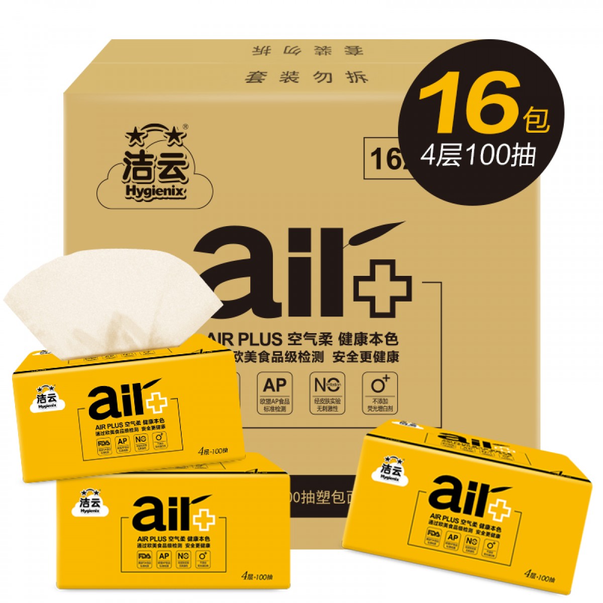 商品名称:洁云 本色抽纸竹浆整箱16包100抽4层家用家庭装纸巾面巾纸餐巾纸巾