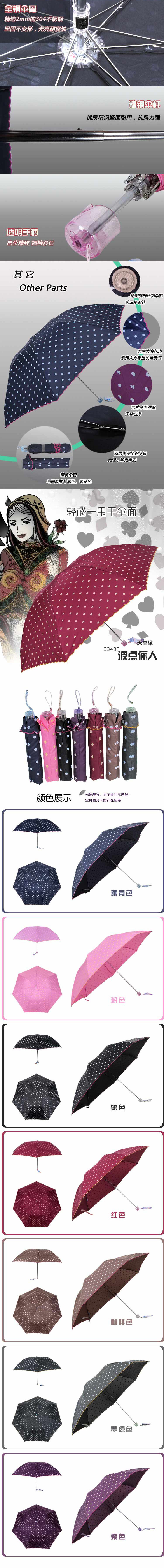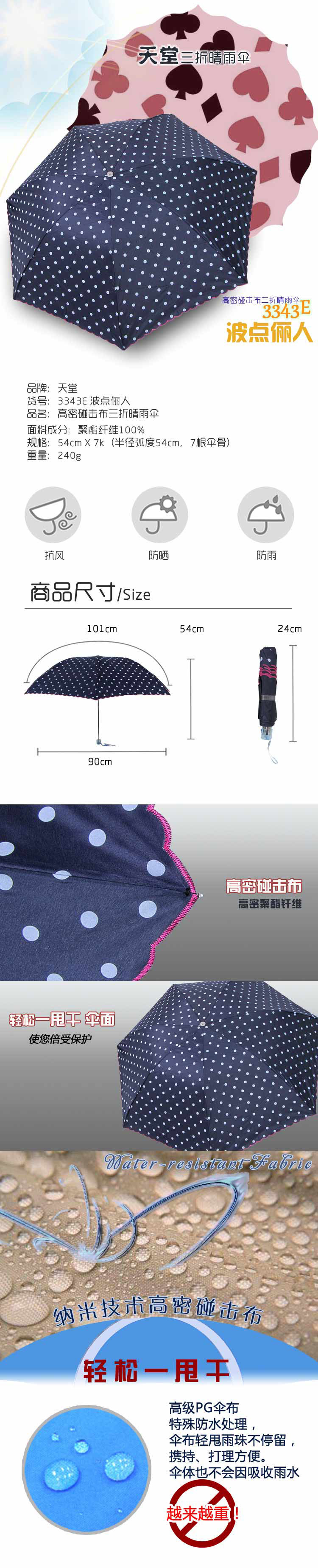 商品名称:天堂伞 3343E波点俪人三折叠超轻铅笔伞晴雨伞波浪超细迷你女士伞