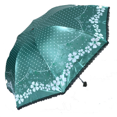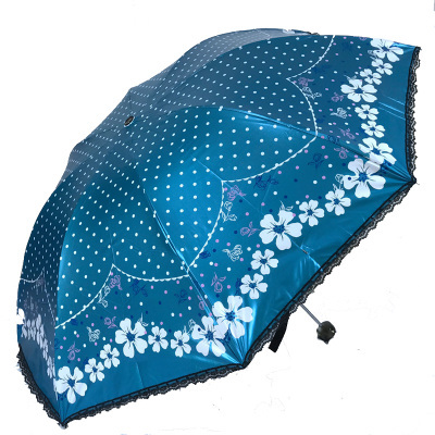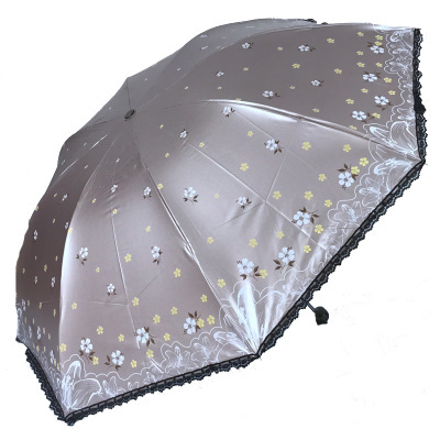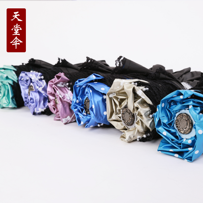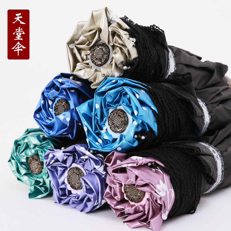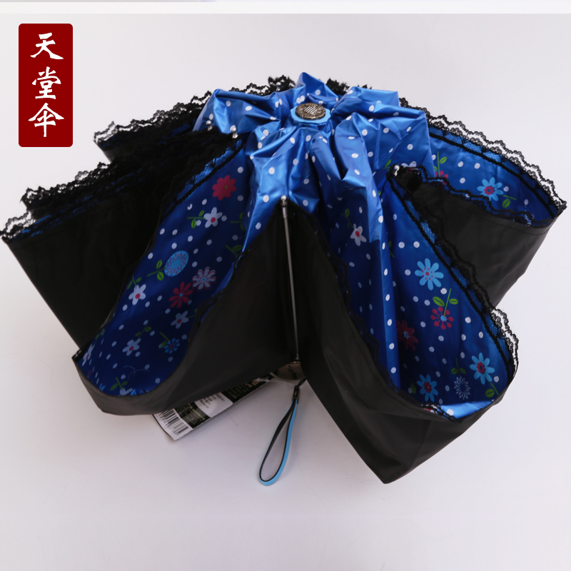天堂伞33138e春色宜人黑涤彩胶防晒伞三折叠晴雨伞遮阳伞蕾丝花边