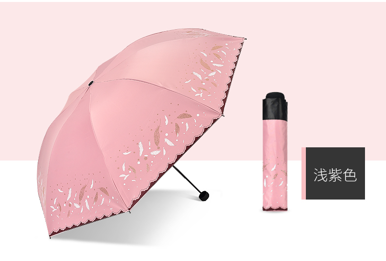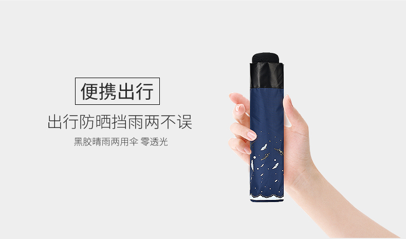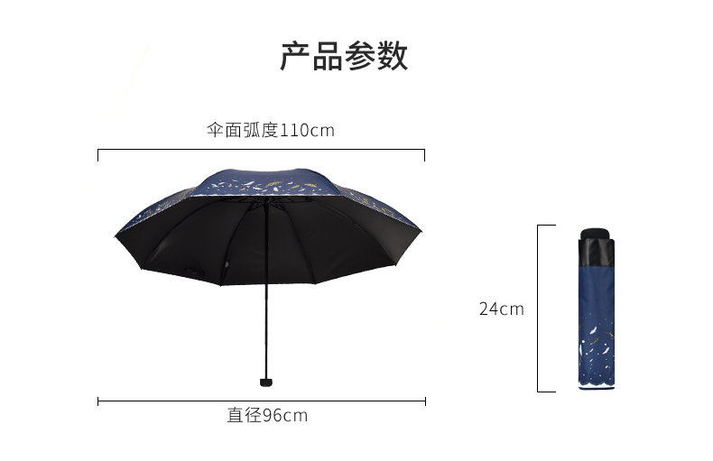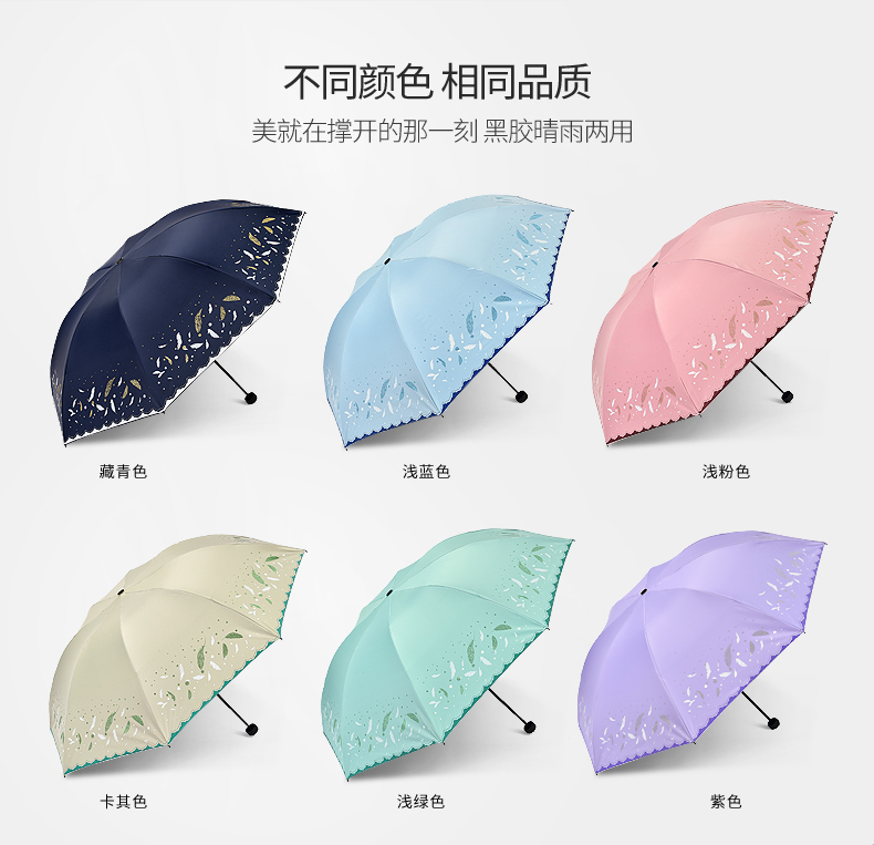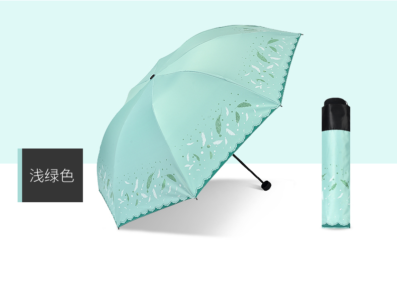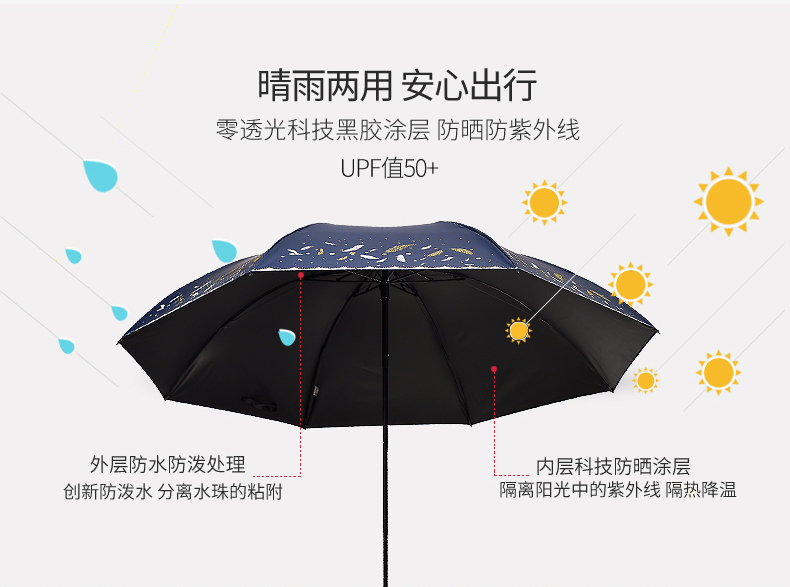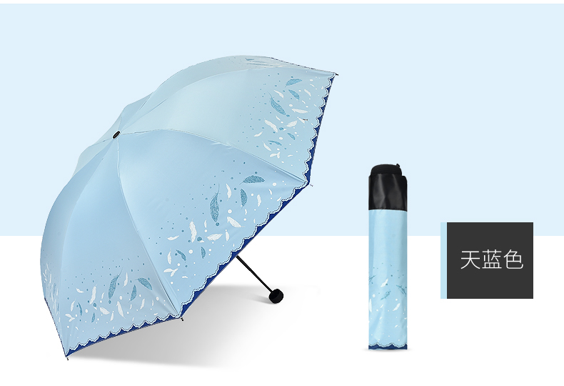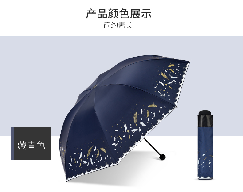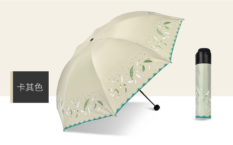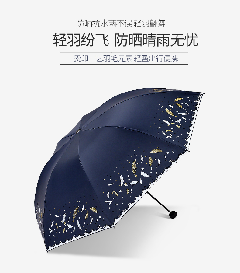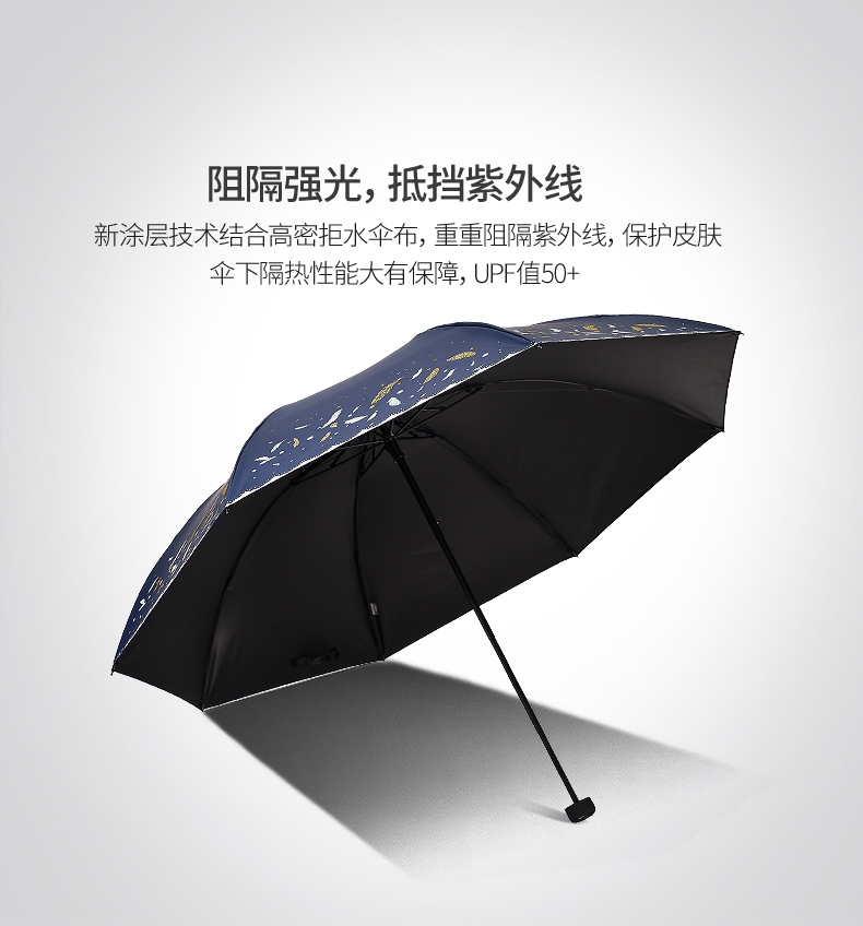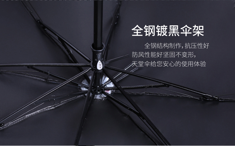 商品名称:天堂伞 33458E轻羽纷飞晴雨两用三折黑胶太阳防晒防紫外线遮阳