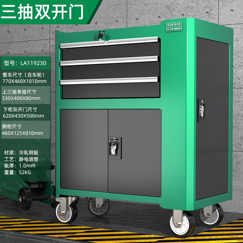 商品名称:老A (LAOA)工业重型汽修工具车多功能维修推车汽车间工具柜 3层双开带侧门 单位:个