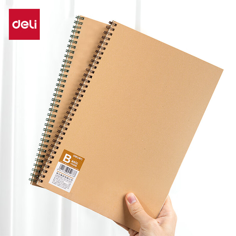 商品名称:得力(deli) A4/60张牛皮纸笔记本本子线圈本螺旋本软抄本考研错题本学习用品2本LA460-02 单位:组