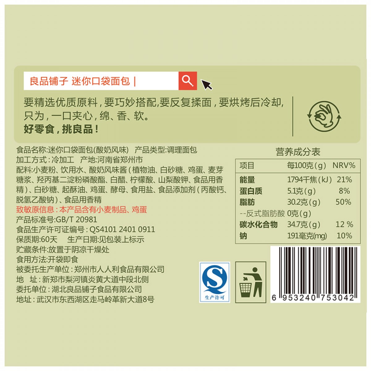 商品名称:良品铺子 乳酸菌小口袋面包800g早餐营养酸奶蛋糕零食整箱