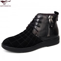 七匹狼 棉鞋冬季磨砂头层牛皮拉链真皮高帮男士毛皮鞋子