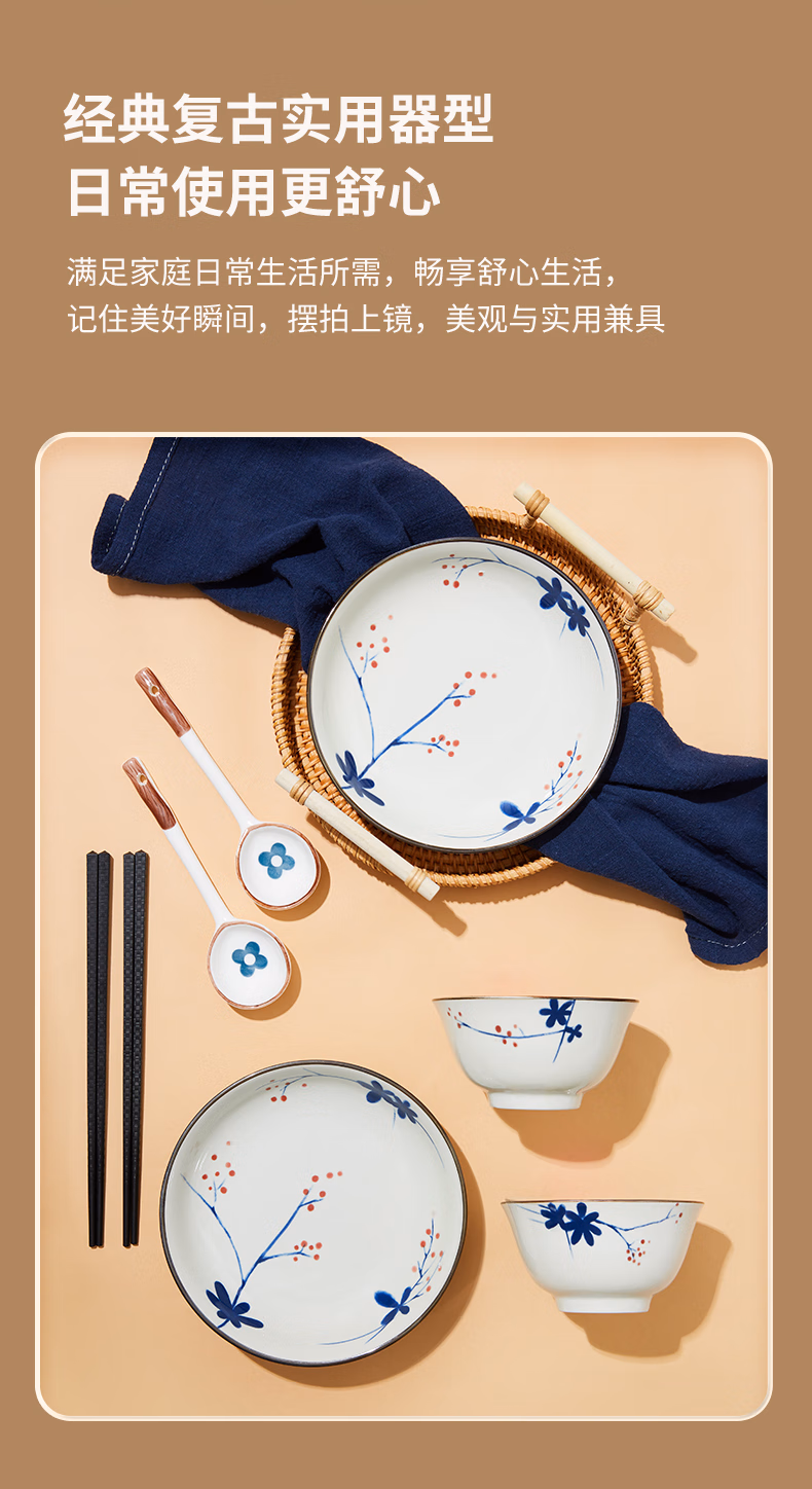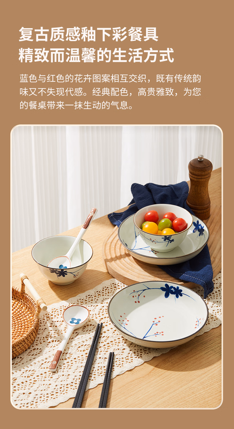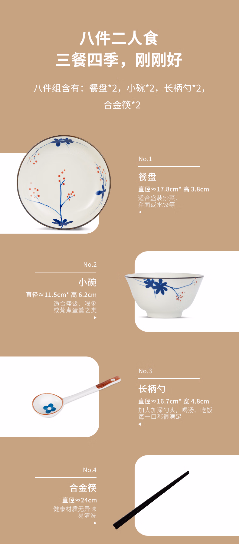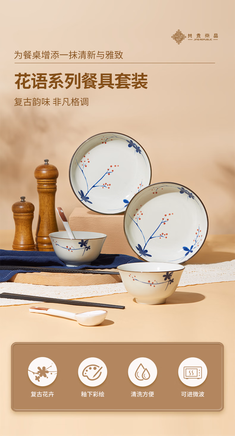 商品名称:共禾京品 复古韵味花语餐具8件套