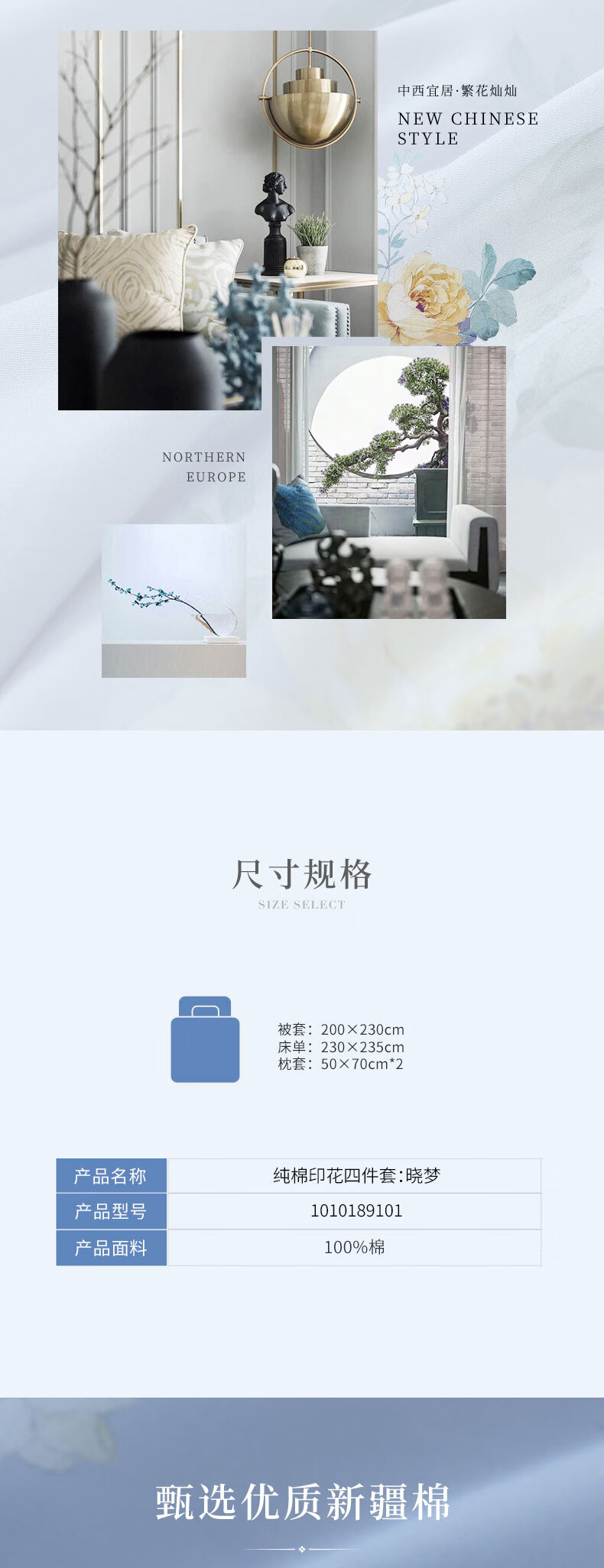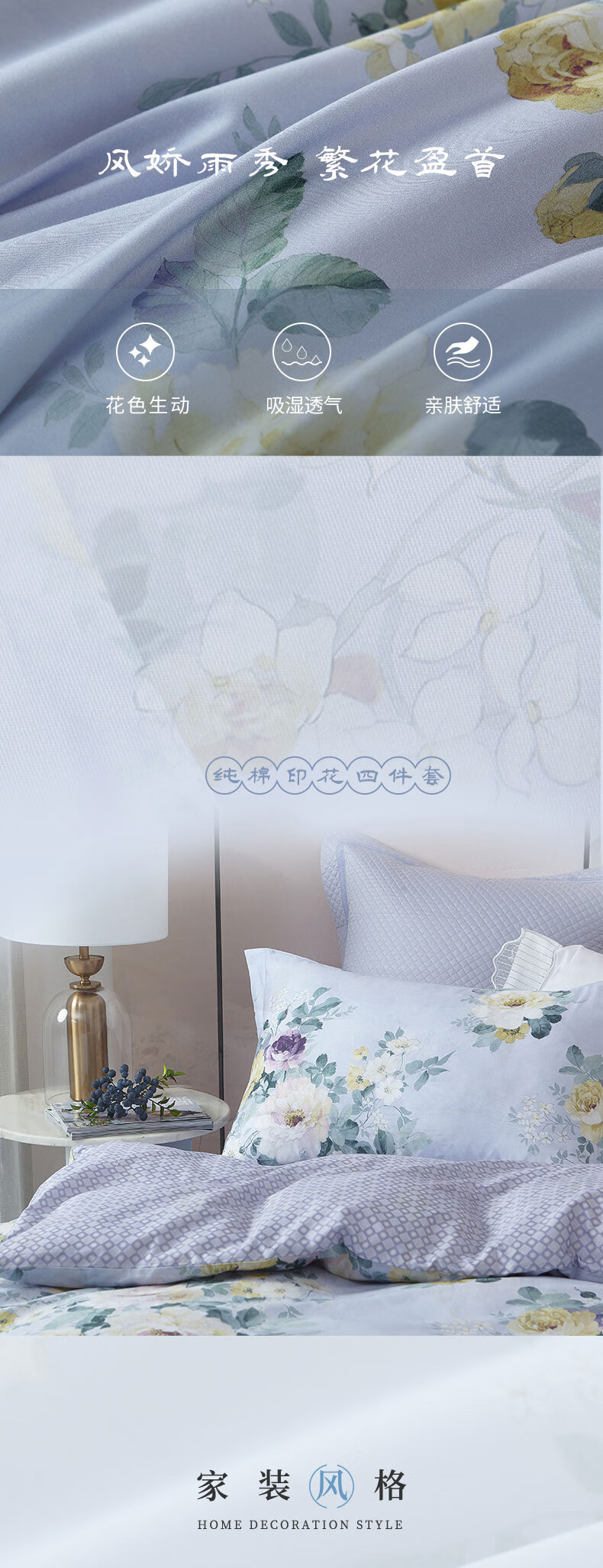 商品名称:梦洁 纯棉印花四件套:晓梦 200*230cm被套