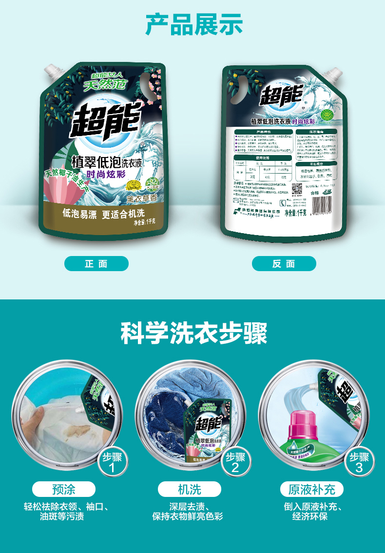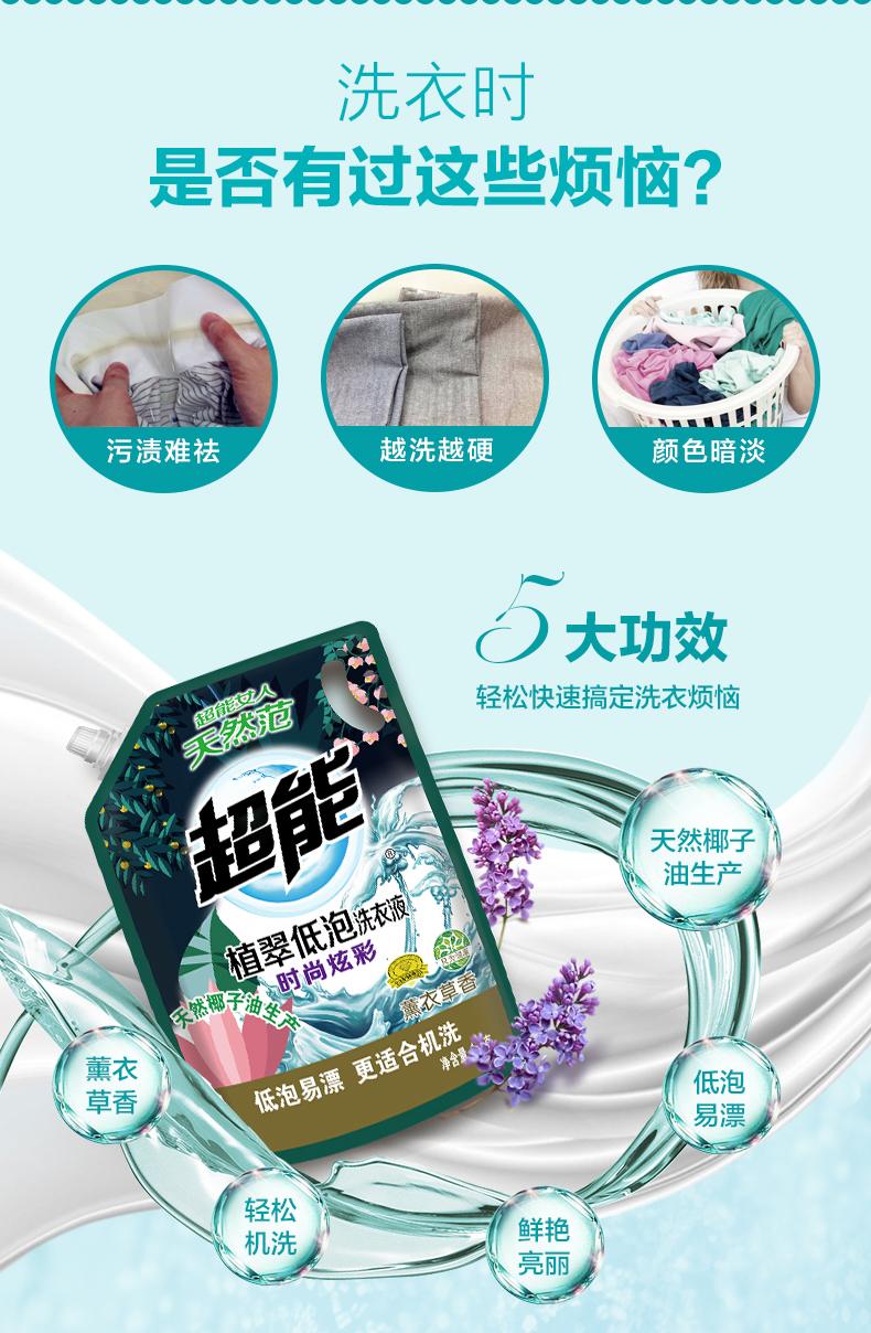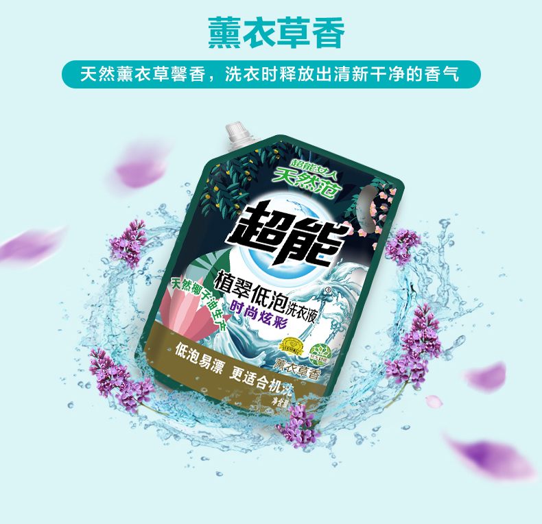 超能时尚炫彩袋装1kg天然椰油生产薰衣草香洗衣液