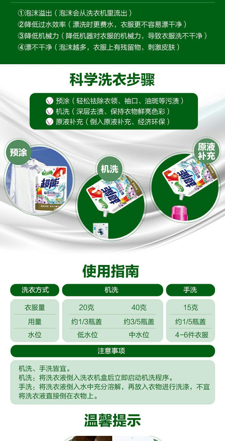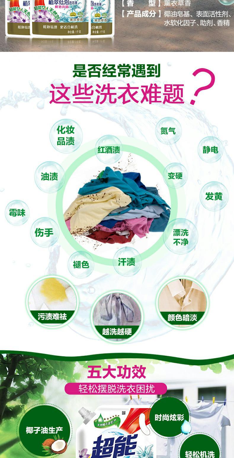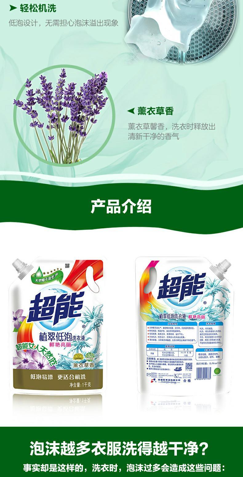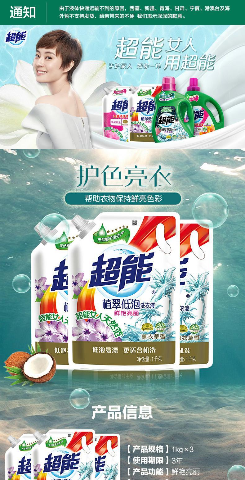 商品名称:超能植翠低泡洗衣液1kg*3袋装组合家庭补充装