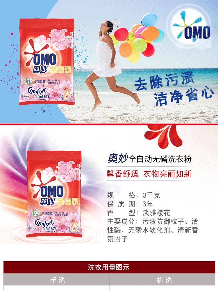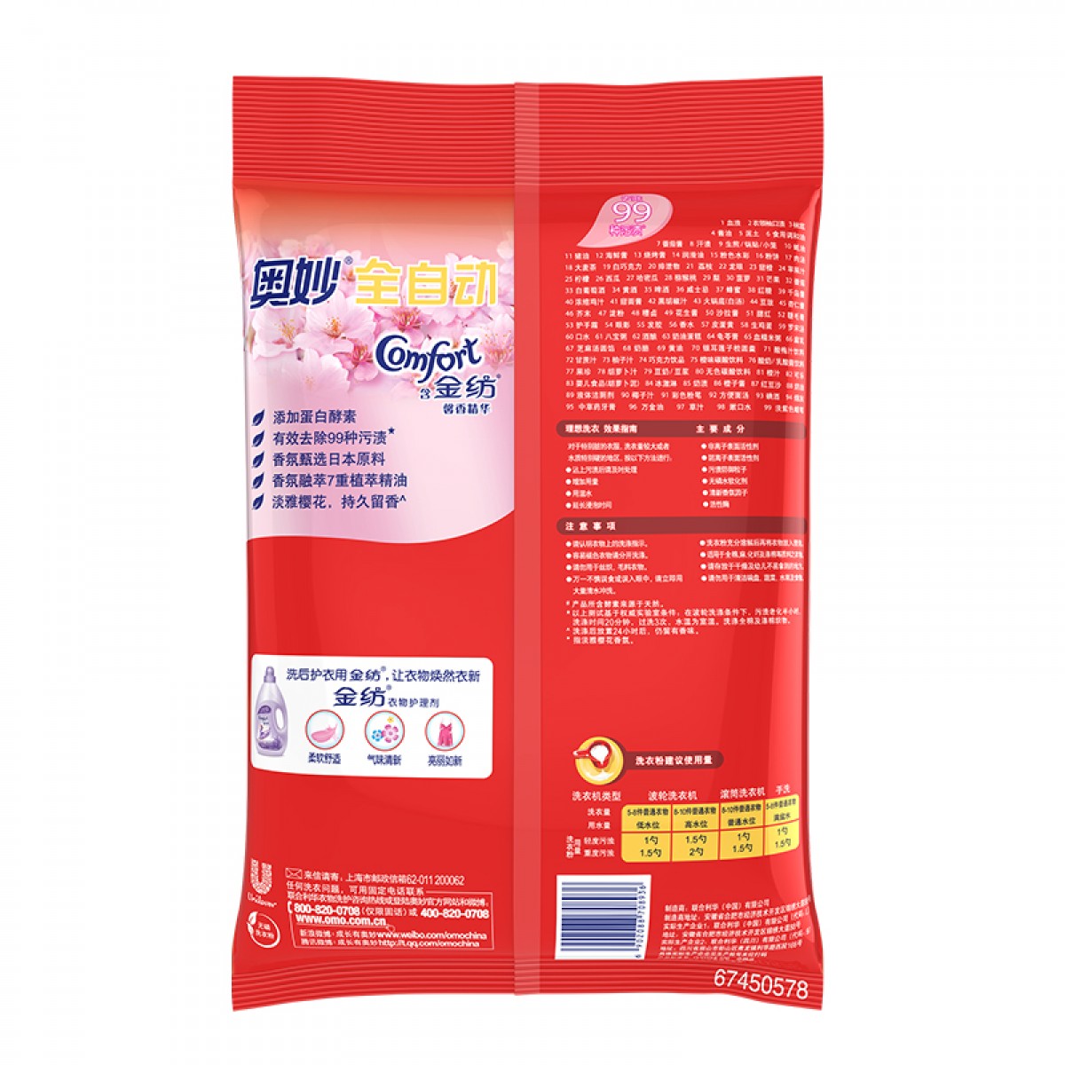 商品名称:奥妙 全自动无磷洗衣粉含金纺馨香淡雅樱花3kg手洗去渍家庭袋装