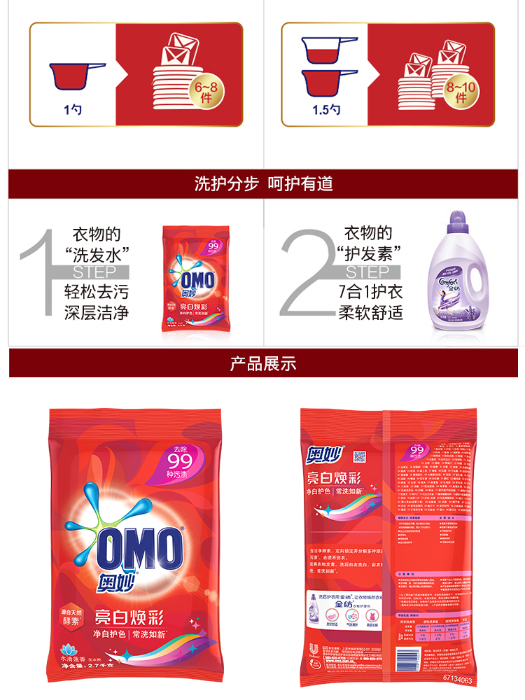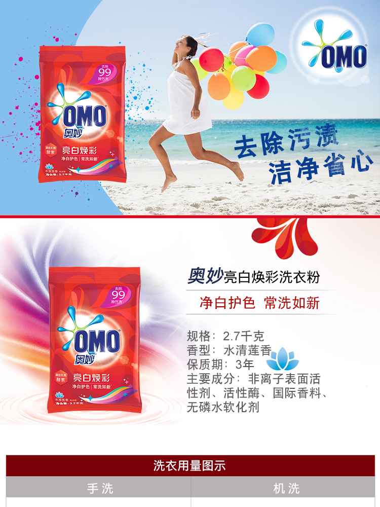商品名称:奥妙 酵素洗衣粉2.7kg亮白焕彩水清莲香去污去渍