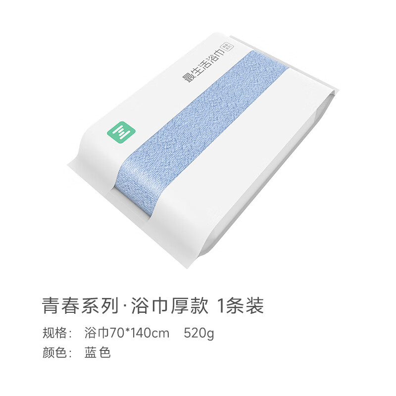 最生活 加大加厚浴巾 A类纯棉吸水成人洗澡巾 柔软速干男女通用大浴巾 加厚款 青春浴巾-蓝色/520g1条 单位:条