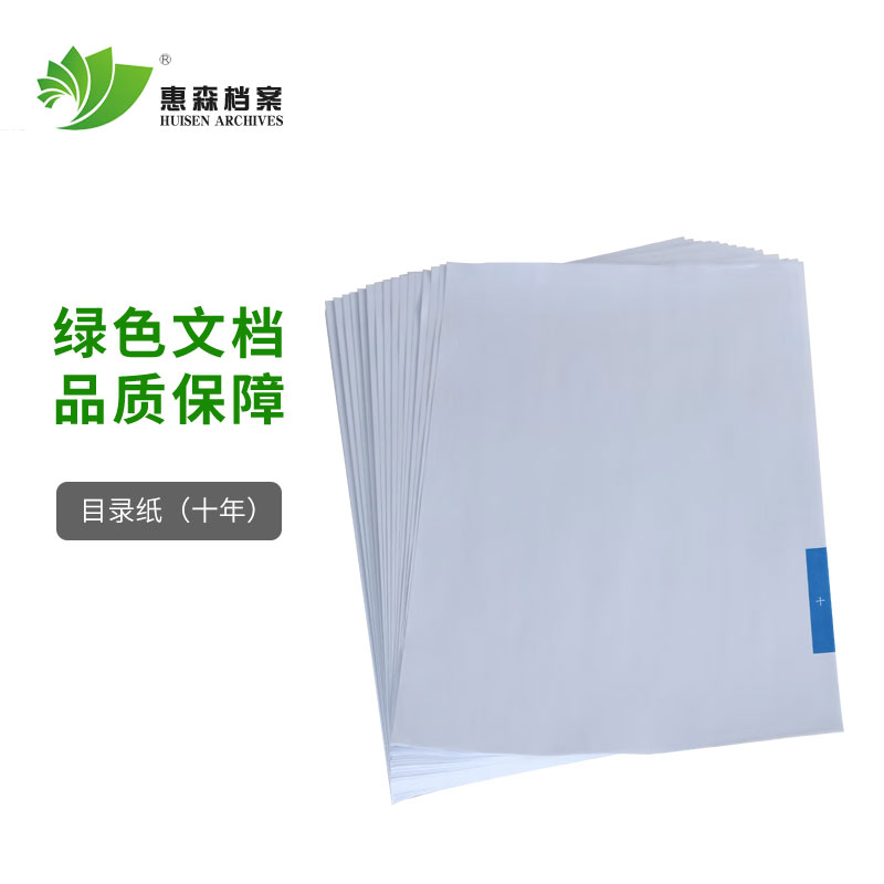 商品名称:惠森档案 a4档案归类 双胶纸 十年三十年 期限纸 十年 100张/扎 10扎/包 单位:包