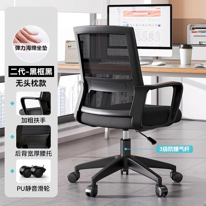 蛮曲 办公靠背升降转椅(三级防爆气杆+8cm海绵坐垫+悬浮腰托)黑色 单位:把