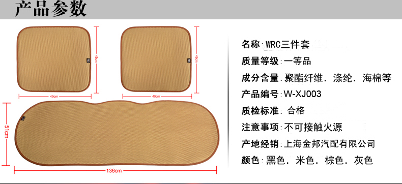 商品名称:国产 WRC运动无靠背秋季汽车坐垫单片三件套免绑防滑车垫四季通用座垫