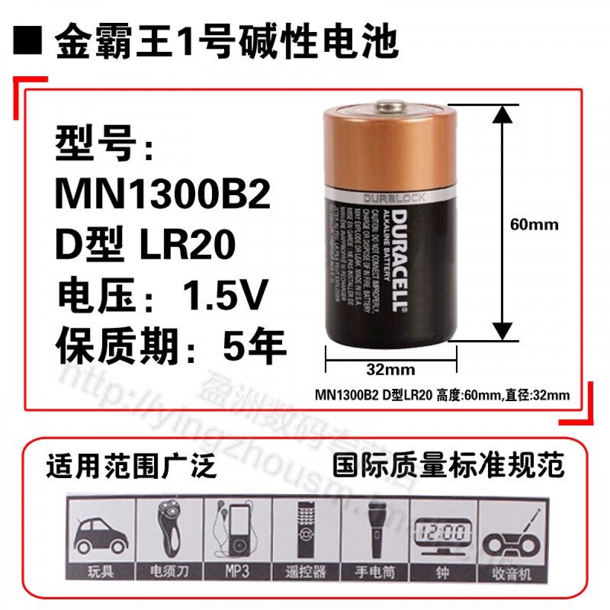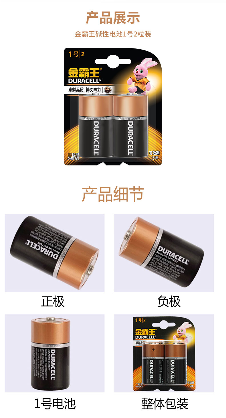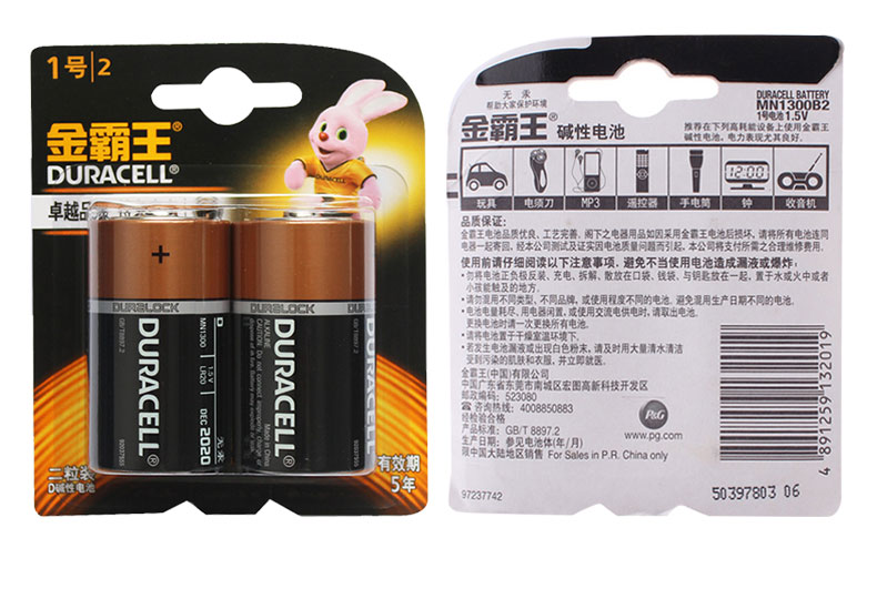 商品名称:金霸王 1号电池2粒1.5V大号D型LR20 MN1300B2