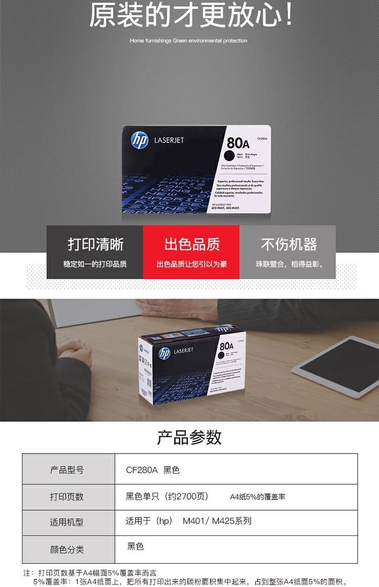 商品名称:★ 惠普/HP CF280A 打印机硒鼓墨粉 hp 80A粉盒 M401d M401dn M425dw