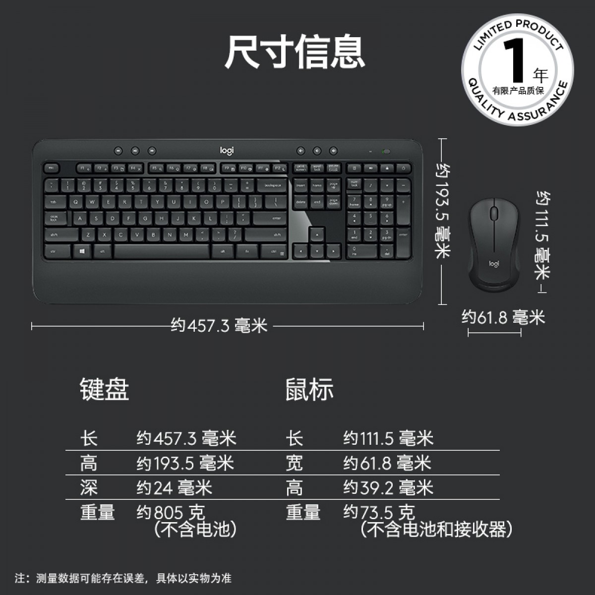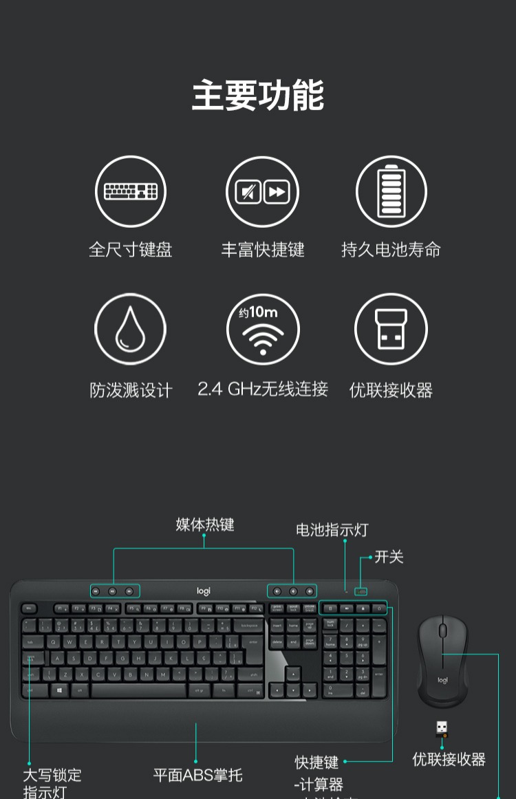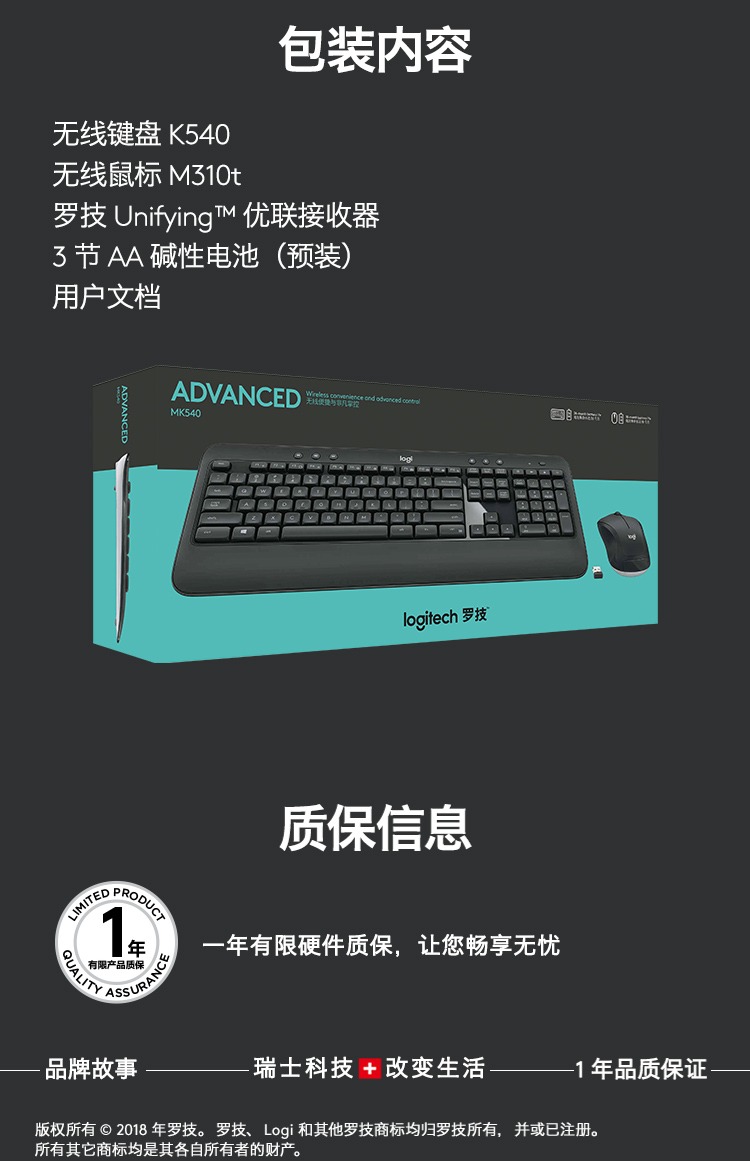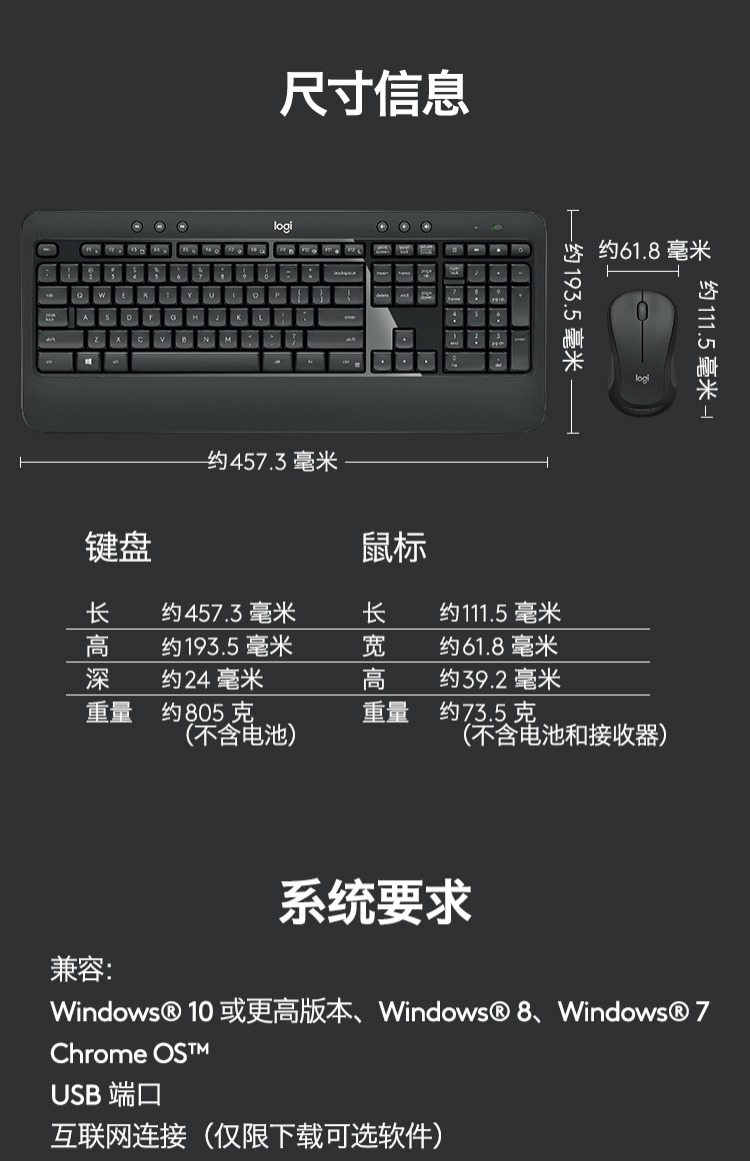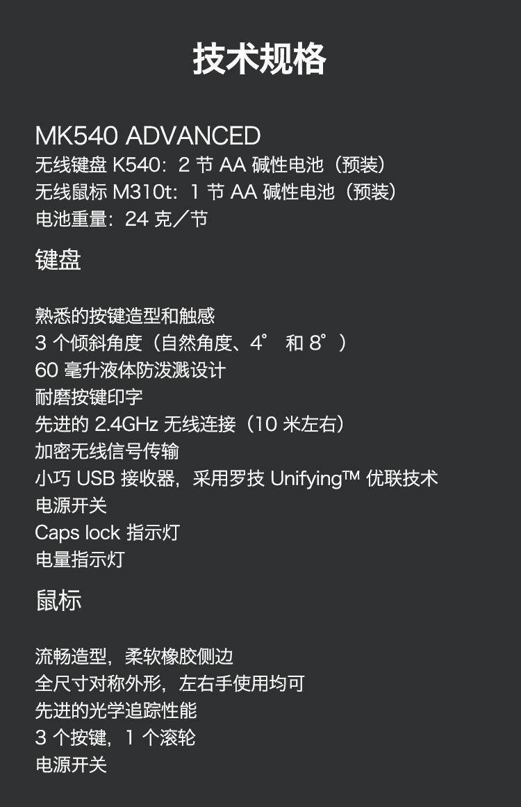 商品名称:罗技/Logitech 无线键鼠套装笔记本台式电脑办公家用游戏全尺寸键盘鼠标套装MK520/MK345升级 MK540