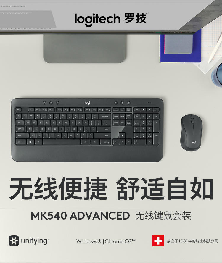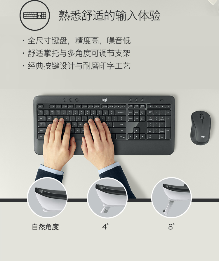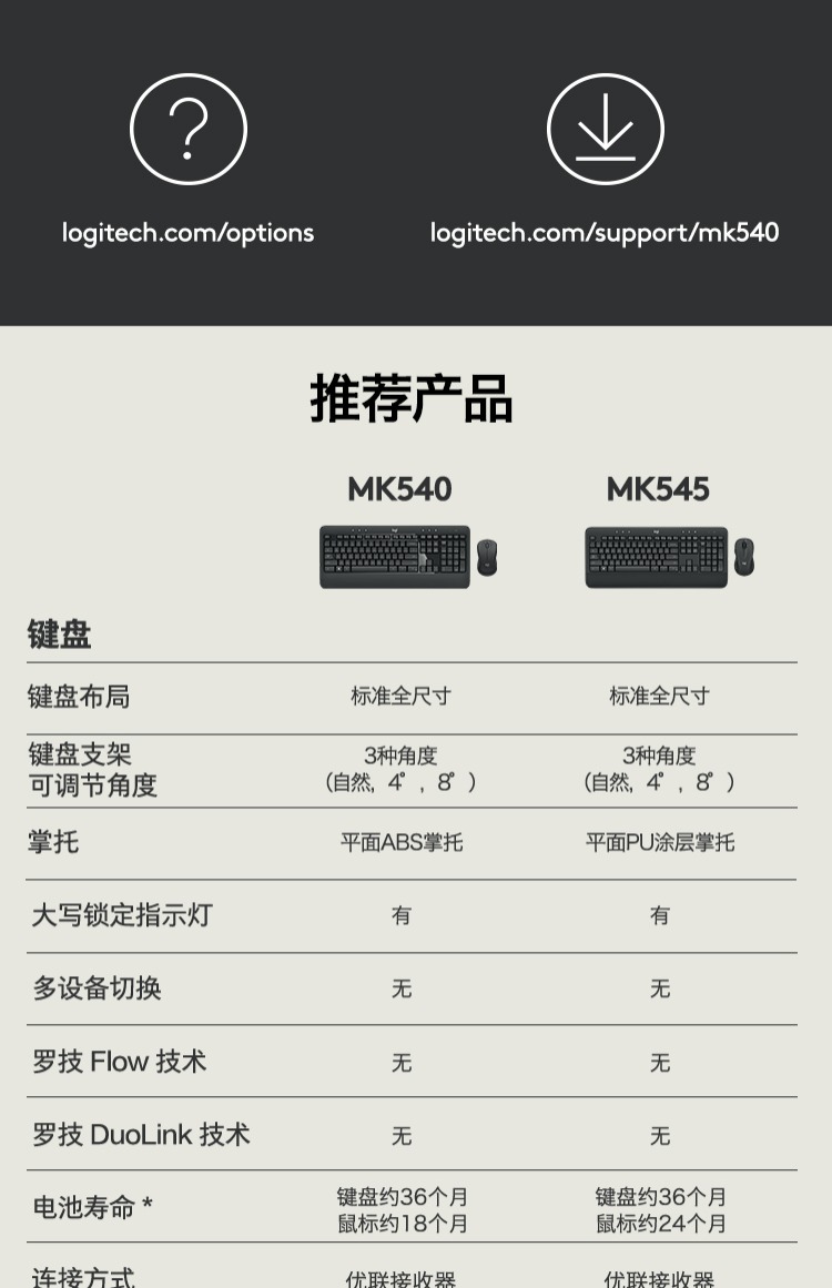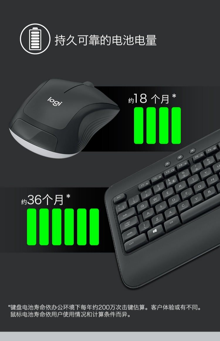 罗技/Logitech 无线键鼠套装笔记本台式电脑办公家用游戏全尺寸键盘鼠标套装MK520/MK345升级 MK540