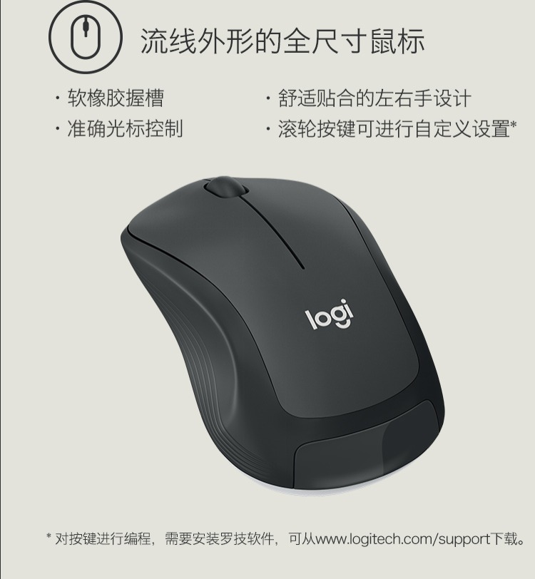 罗技 有线鼠标办公台式笔记本电脑家用游戏电竞 M100R