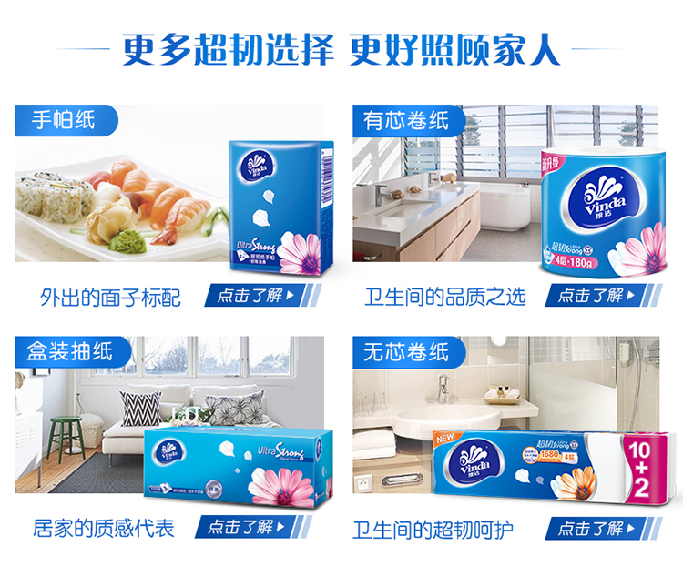 商品名称:维达 超韧有芯卷纸4层180克10卷卫生纸巾纸品