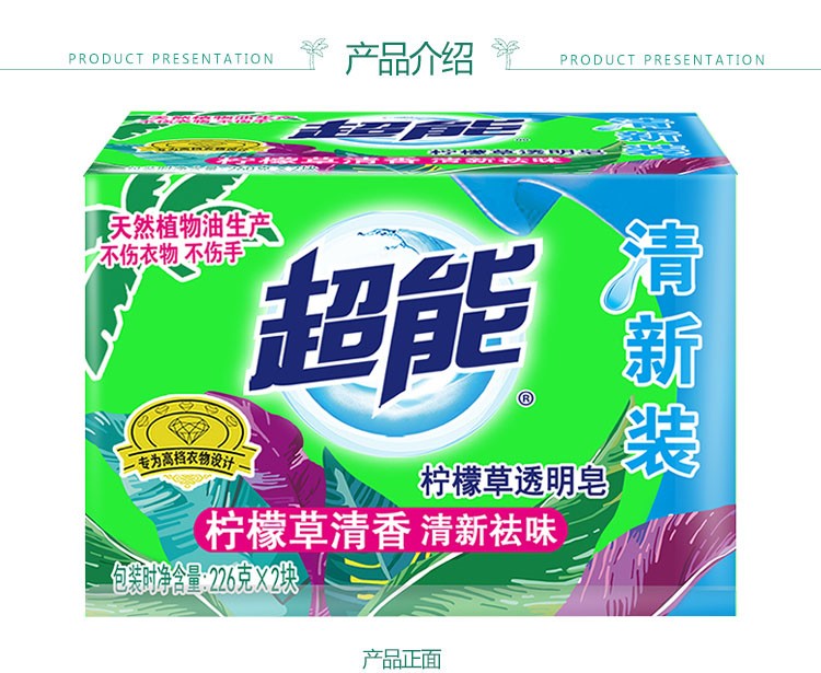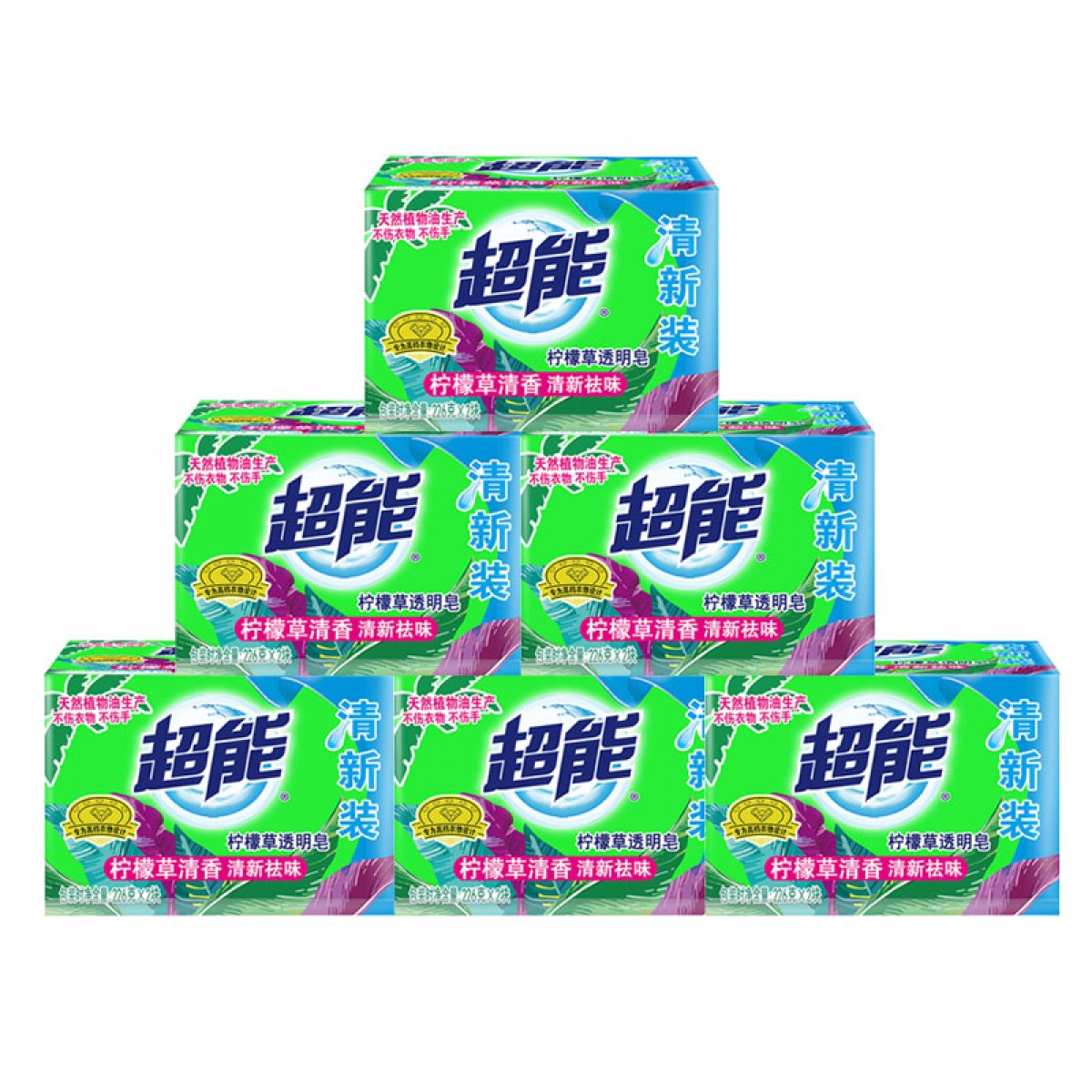 超能洗衣皂226g*2块*6组肥皂透明皂衣物去污皂12块组合装柠檬草香