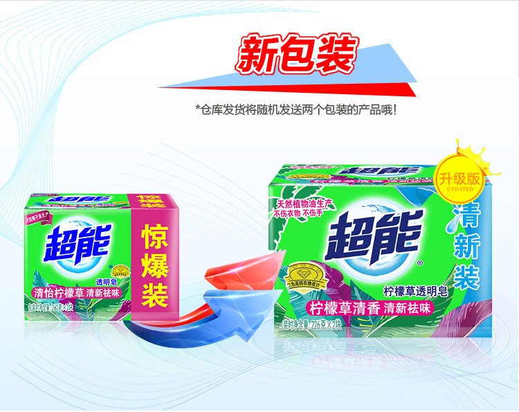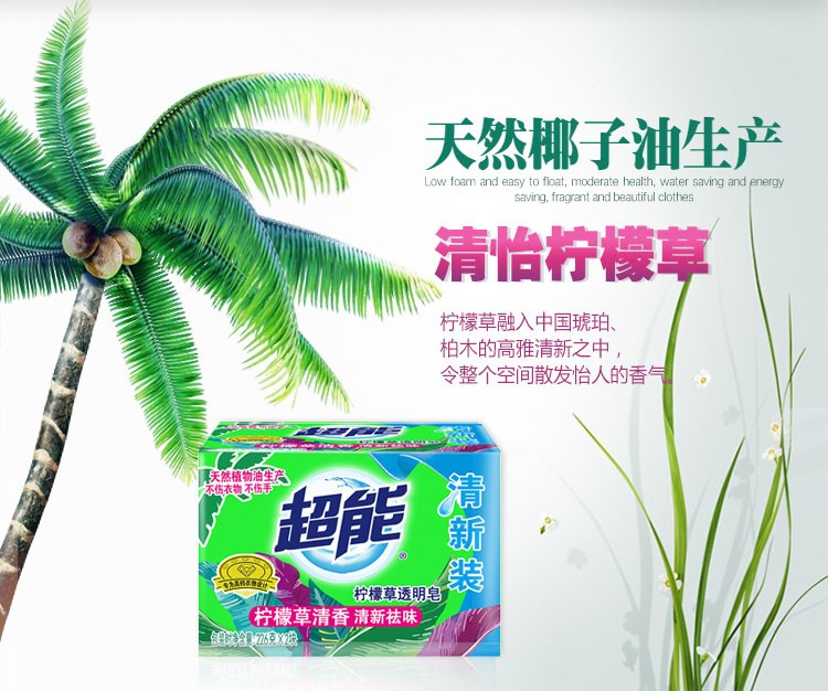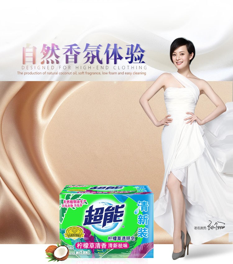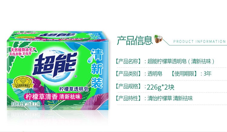 商品名称:超能洗衣皂226g*2块*6组肥皂透明皂衣物去污皂12块组合装柠檬草香