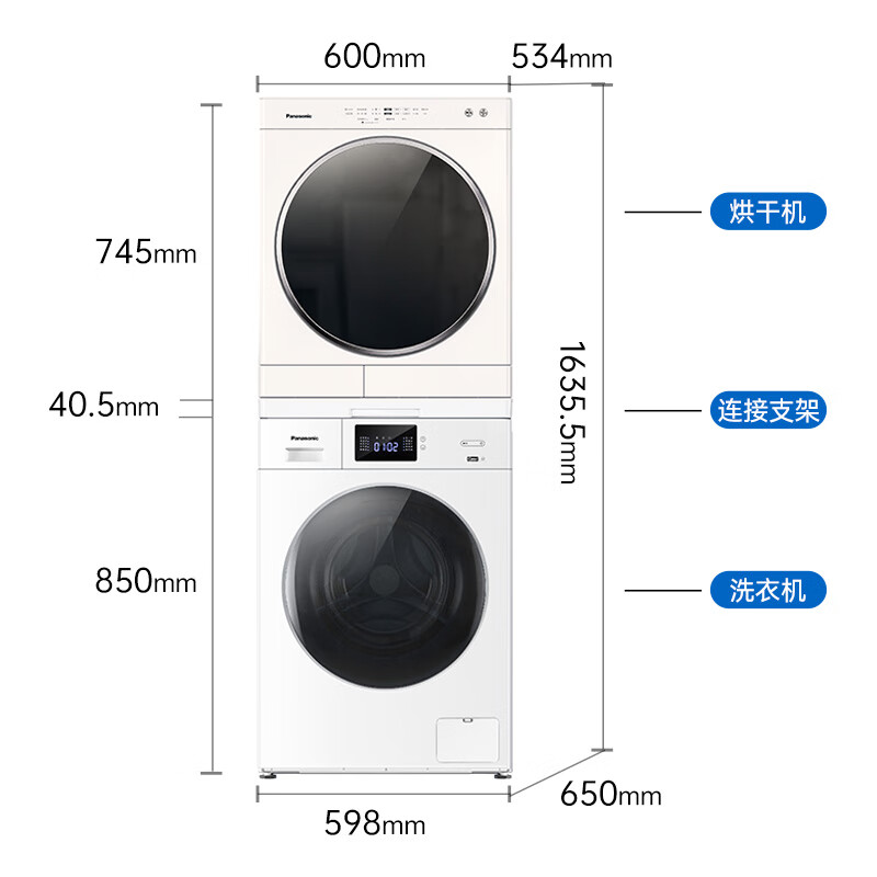 松下电器 洗烘套装白月光滚筒洗衣机干衣机组合全自动智能除菌洗轻柔羽绒洗10洗6烘冷凝烘干机套装 J105+6011P 单位:套