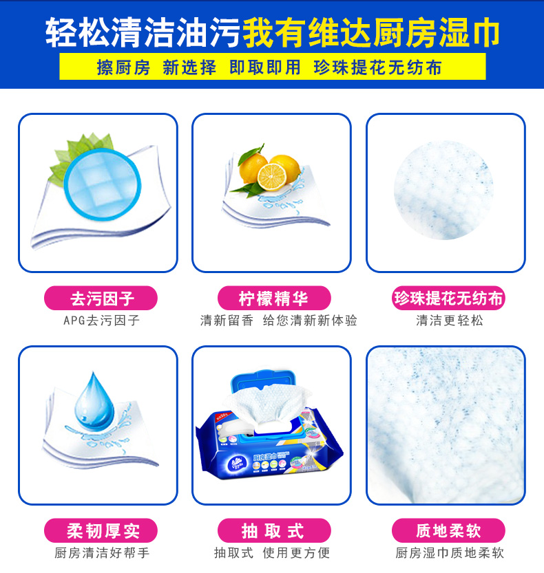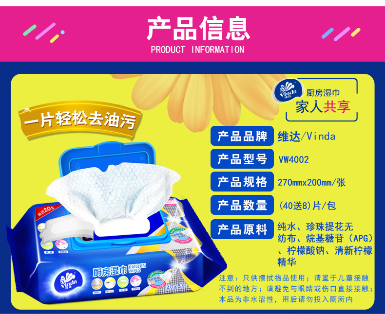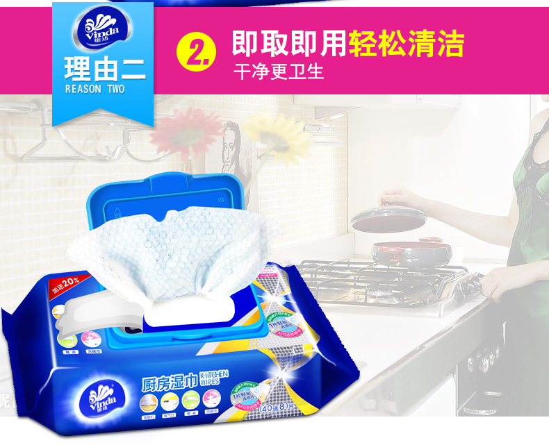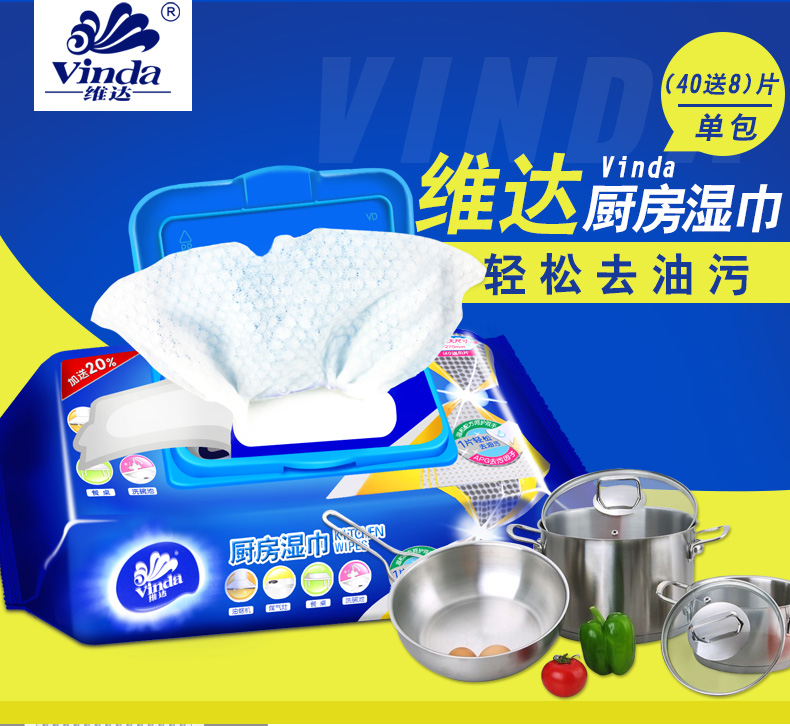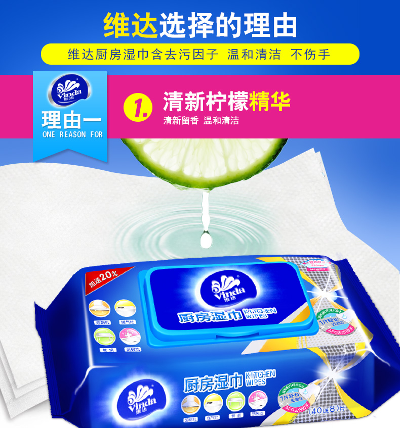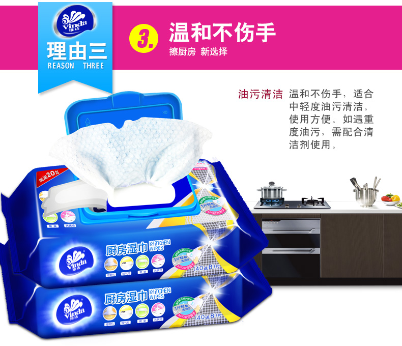商品名称:维达 厨房湿巾40片*3包卫生清洁用纸去油污湿纸巾擦油纸抽纸
