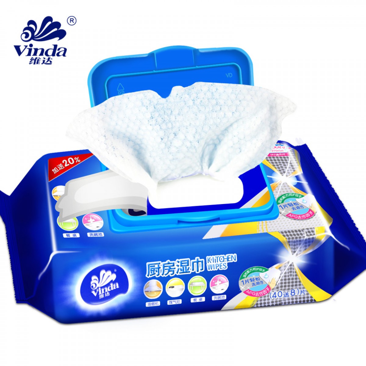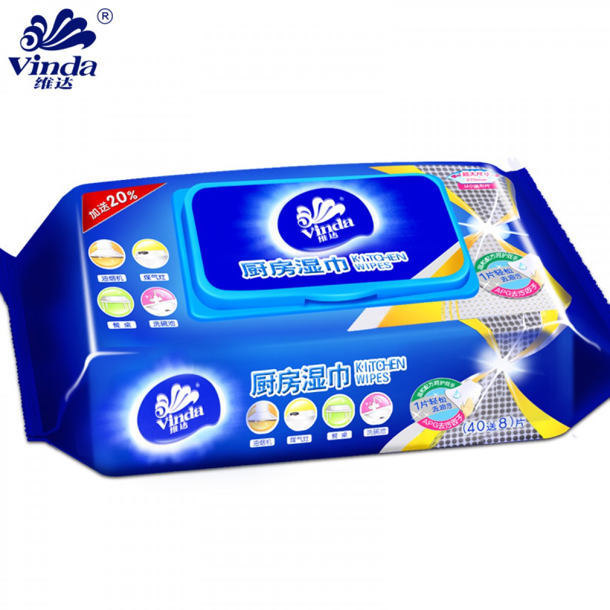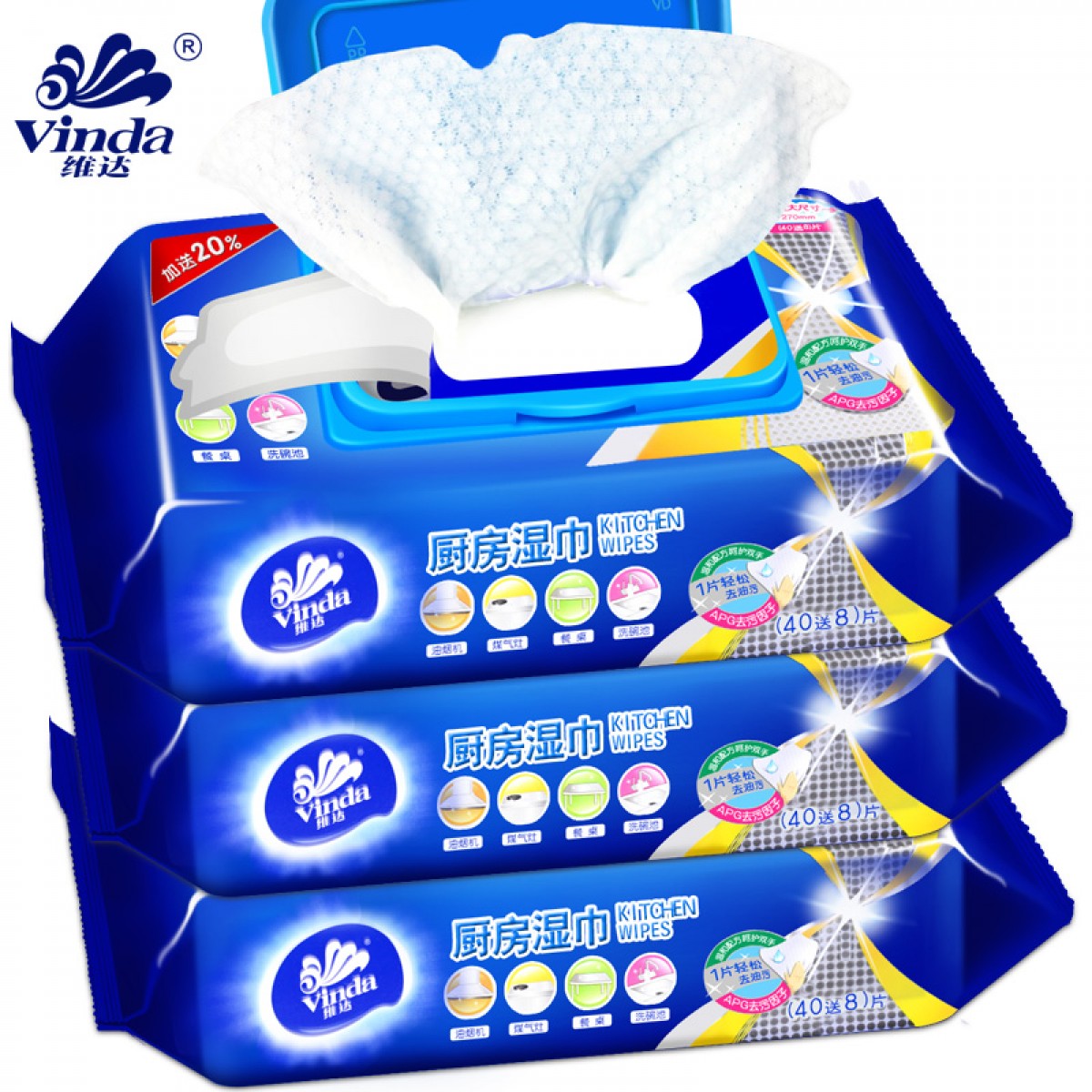 商品名称:维达 厨房湿巾40片*3包卫生清洁用纸去油污湿纸巾擦油纸抽纸