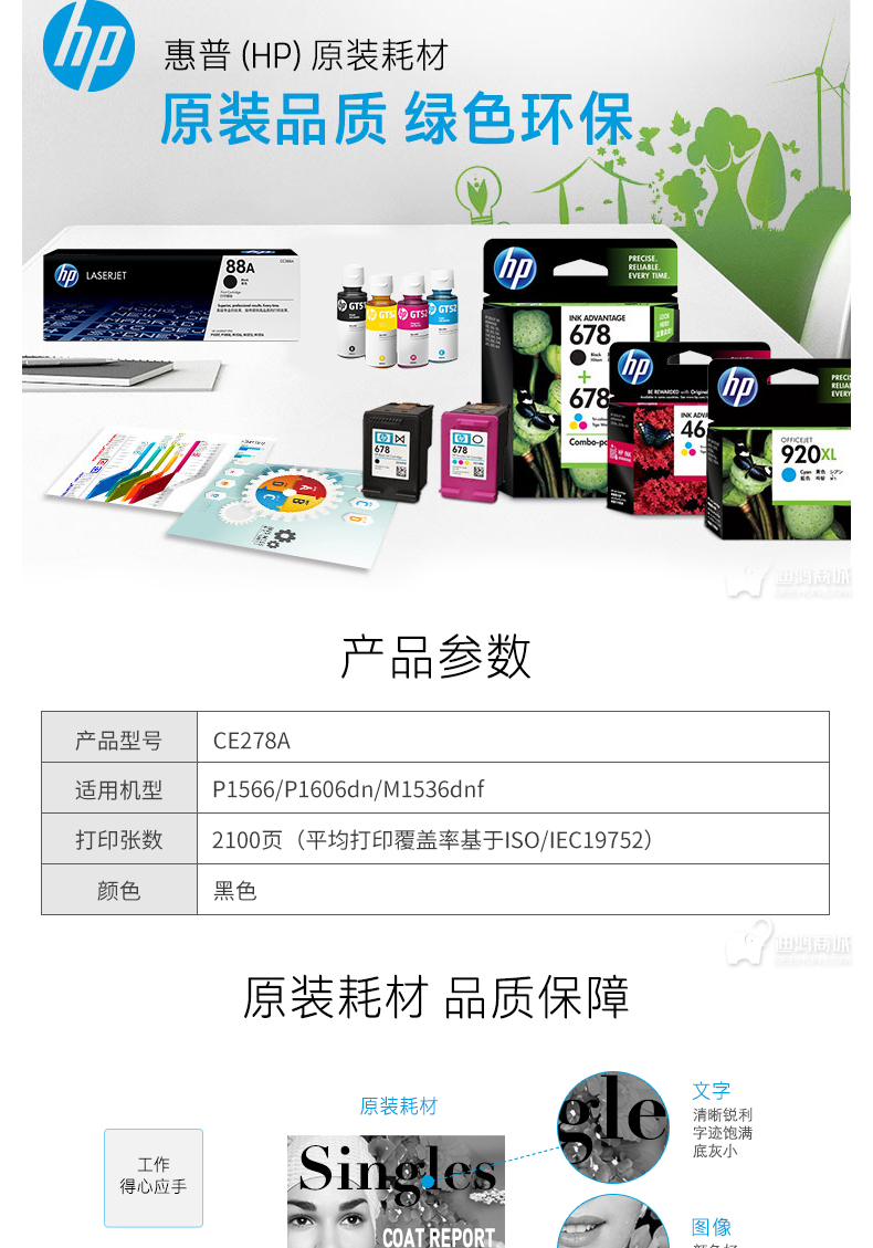 商品名称:惠普/HP CE278A 硒鼓 78a硒鼓 hp 1566 1606 hp1536 hp 1536dnf