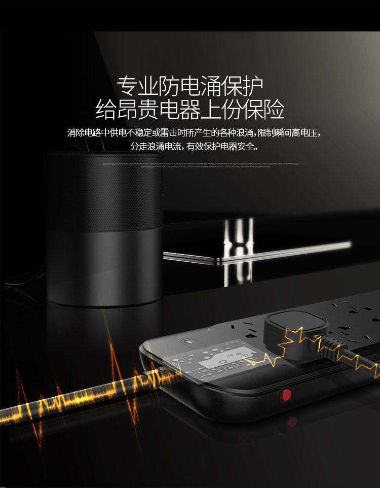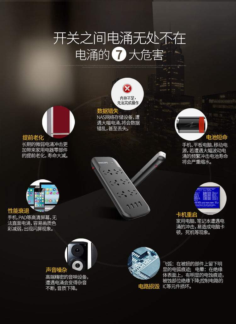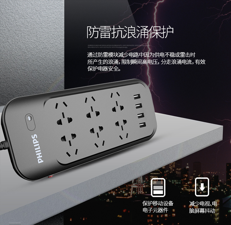 飞利浦 组合孔防雷插座接线板插线板儿童保护门过载保护 SPS2032S