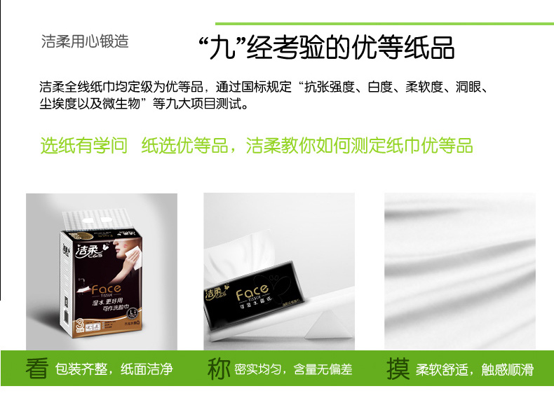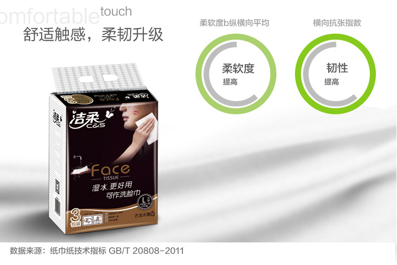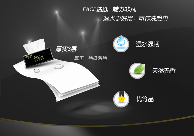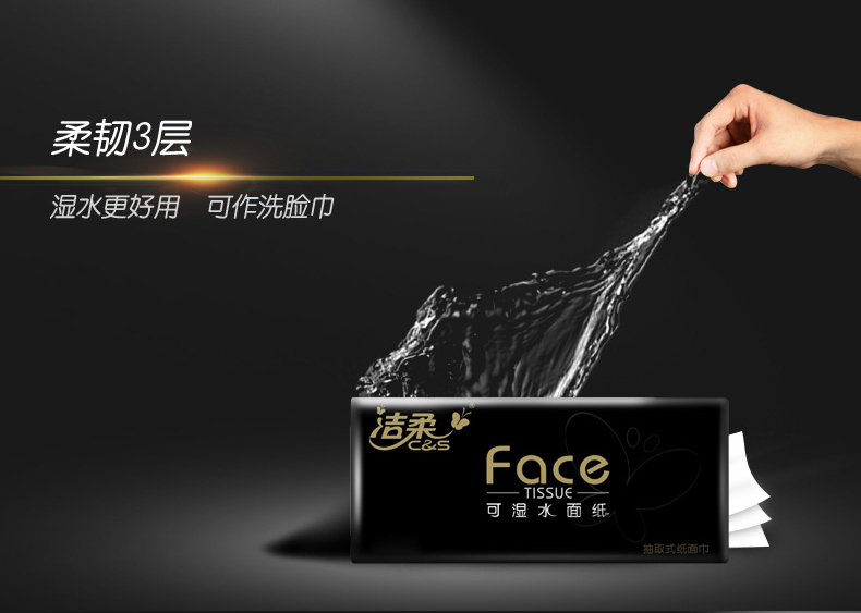 商品名称:洁柔 黑 Face古龙香水味面餐巾纸可湿水加厚150抽3层L大号装3包